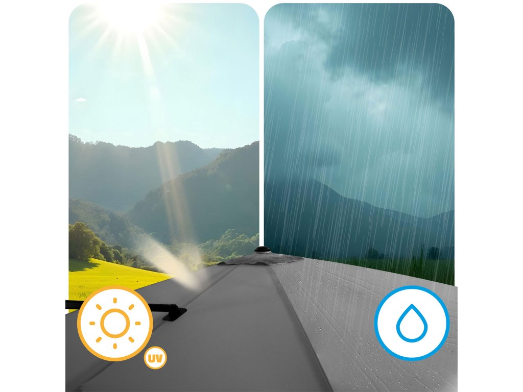 - Eső Semmi esély! Vízálló PE anyagának köszönhetően napernyőnk hatékonyan véd minden csepp ellen.