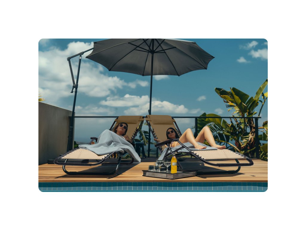 Masszív kialakítás: a váz korrózióálló, masszív anyagokból készült, ami biztosítja a napozóágy hosszú élettartamát és stabilitását.