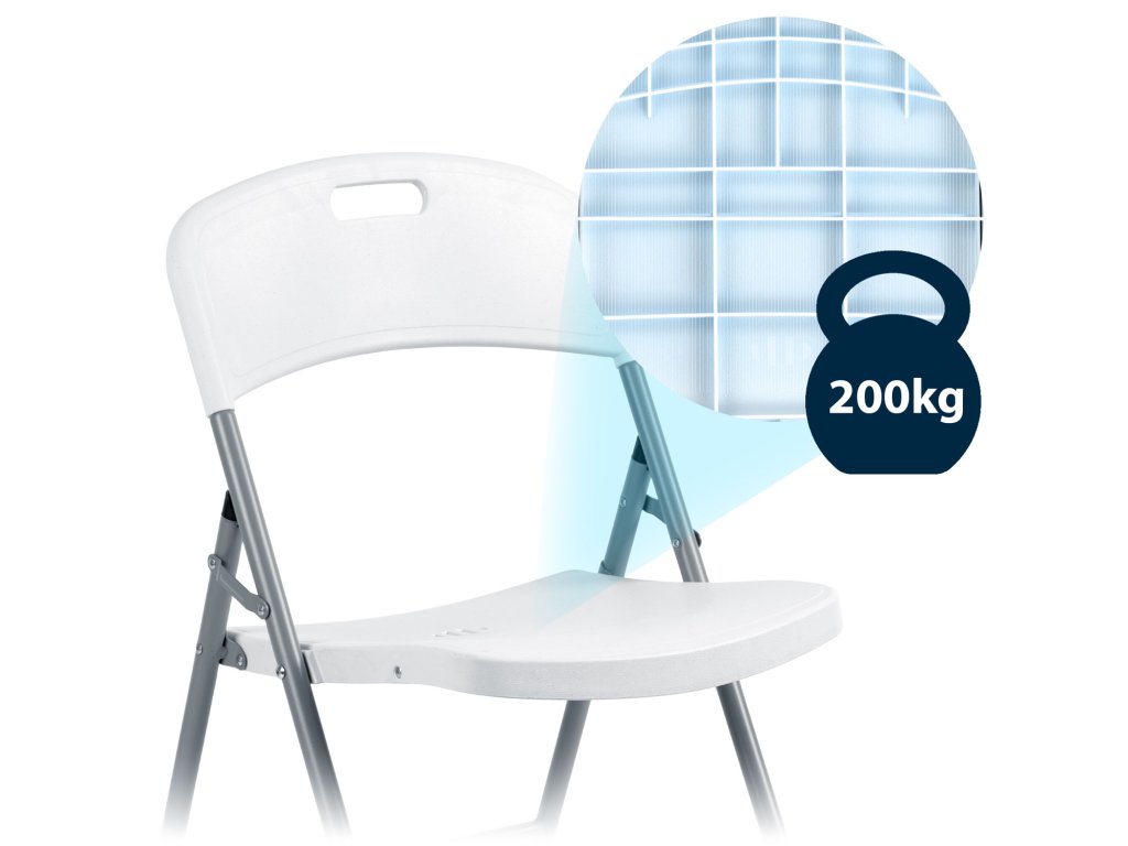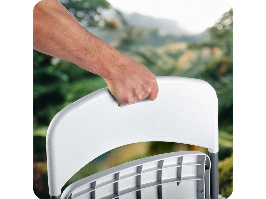 A kidolgozott részleteknek köszönhetően, mint például a kényelmes fogantyú, egyszerűen hordozható és felállítható a szék a célhelyen.