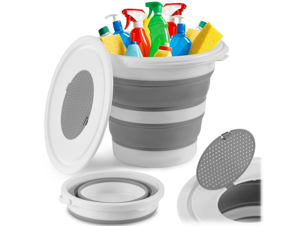 Az összecsukható vödör kevés helyet foglal, ideális kis helyiségekben, mint a lakások, lakókocsik vagy sátrak.