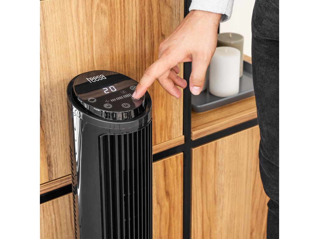 A Teesa gondoskodik a kényelméről. A beépített fogantyúval könnyedén áthelyezheti a ventilátort a helyiségek között. A készlet része egy távirányító is, amely lehetővé teszi a készülék funkcióinak kezelését anélkül, hogy fel kellene állnia a kanapéról. A távirányító biztonságos tárolását egy speciális rekesz biztosítja, amely minimalizálja annak véletlen elvesztésének kockázatát.