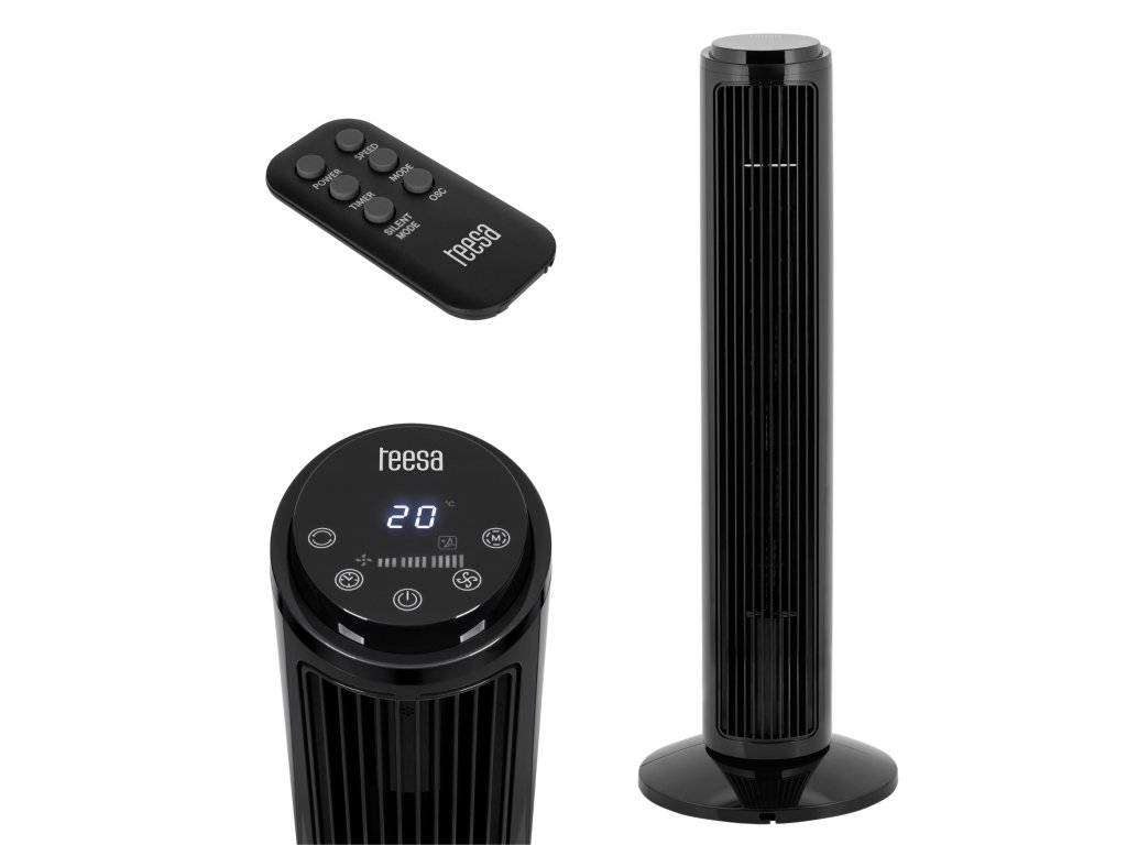 A 74 cm-es magassággal és mindössze 2,8 kg súllyal a Teesa oszlopventilátor kompakt kivitelével tűnik ki, amely lehetővé teszi bármely helyiségben történő egyszerű elhelyezését. Karcsú kialakítása nemcsak helyet takarít meg, hanem eleganciát is kölcsönöz a belső térnek, így a készülék minden berendezéssel tökéletesen harmonizál.