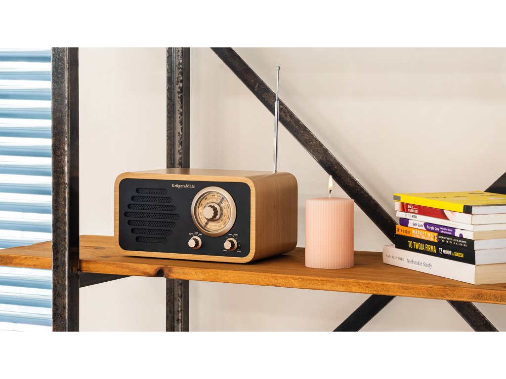 A Kruger&Matz rádió lenyűgöz egyedi stílusával. A fa szekrény fekete előlappal és arany vezérlőkkel elegáns, retro külsőt kölcsönöz. Ez a dizájn tökéletesen illik a klasszikus és modern belső terekhez, és egyedi díszítőjük lesz.