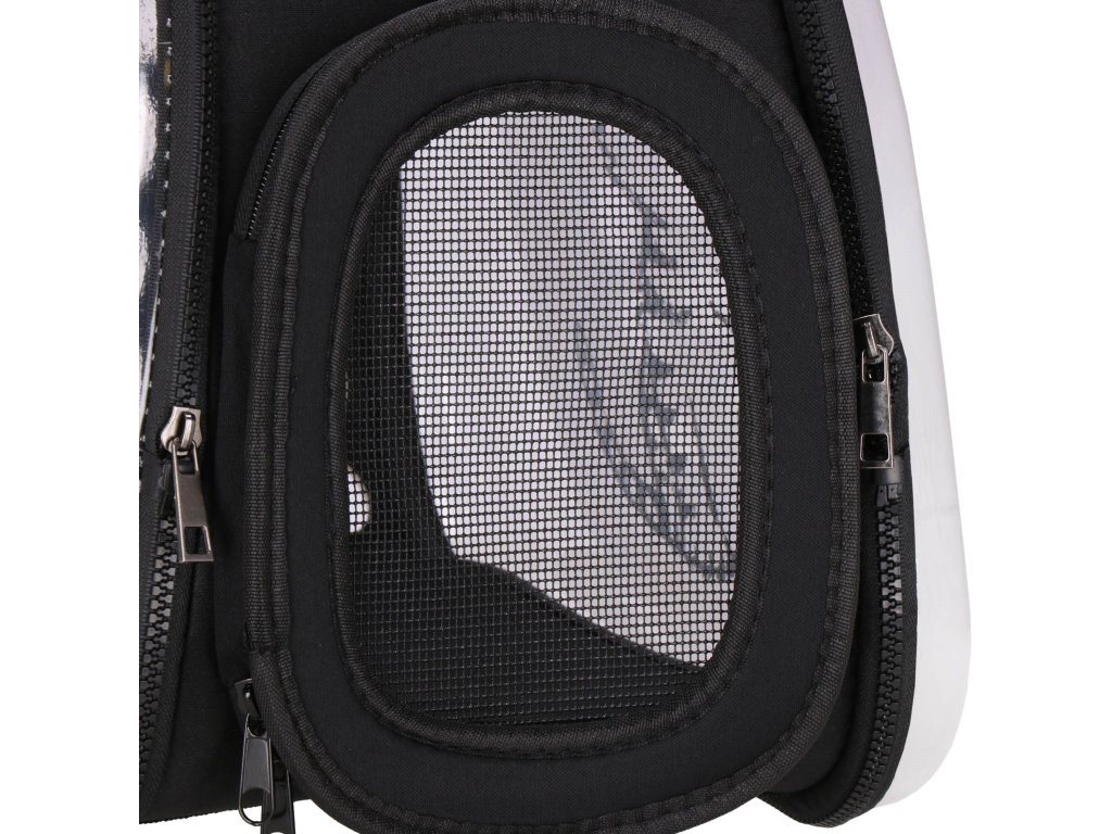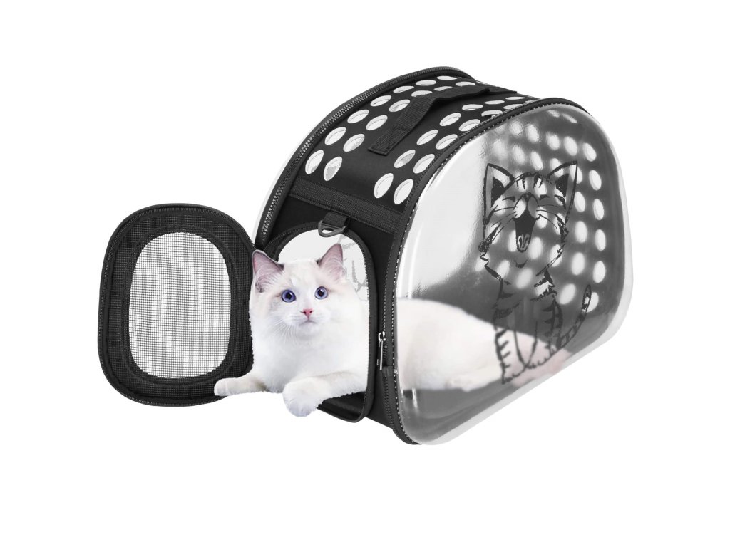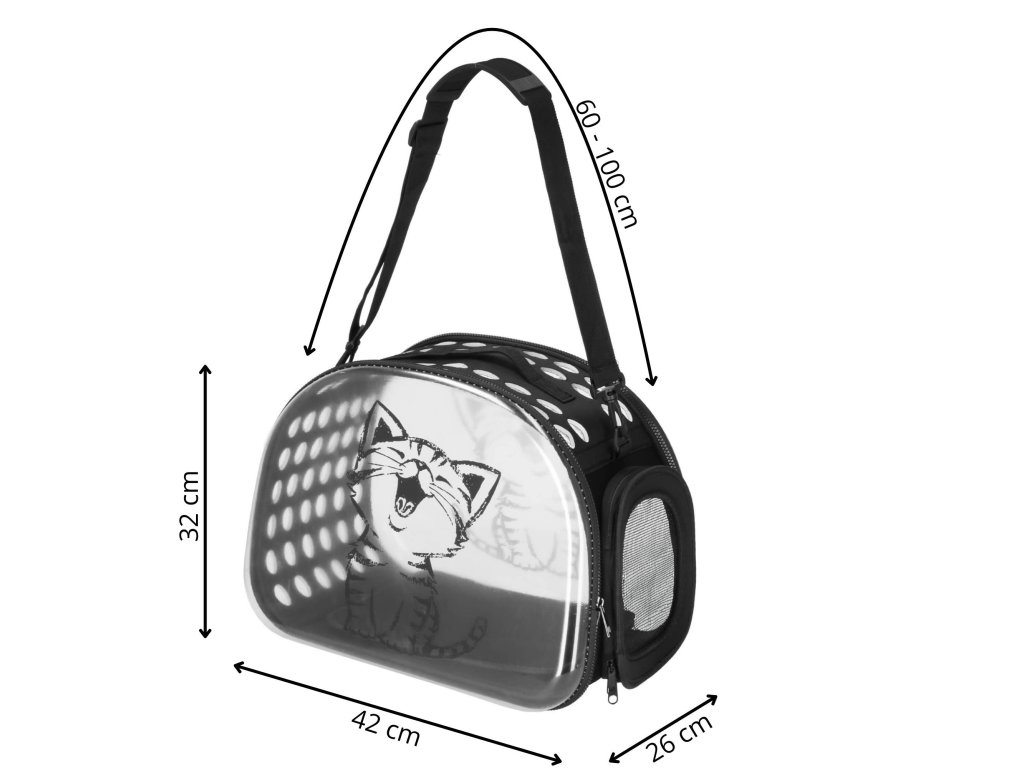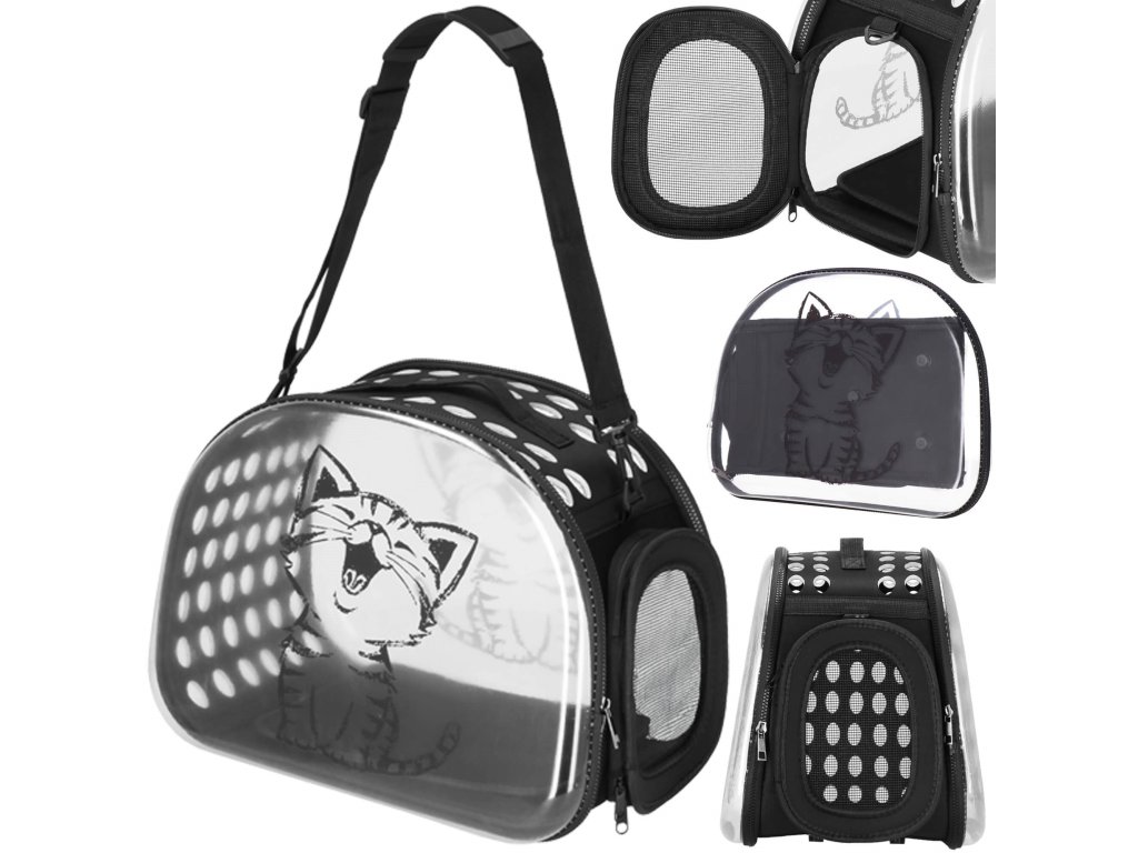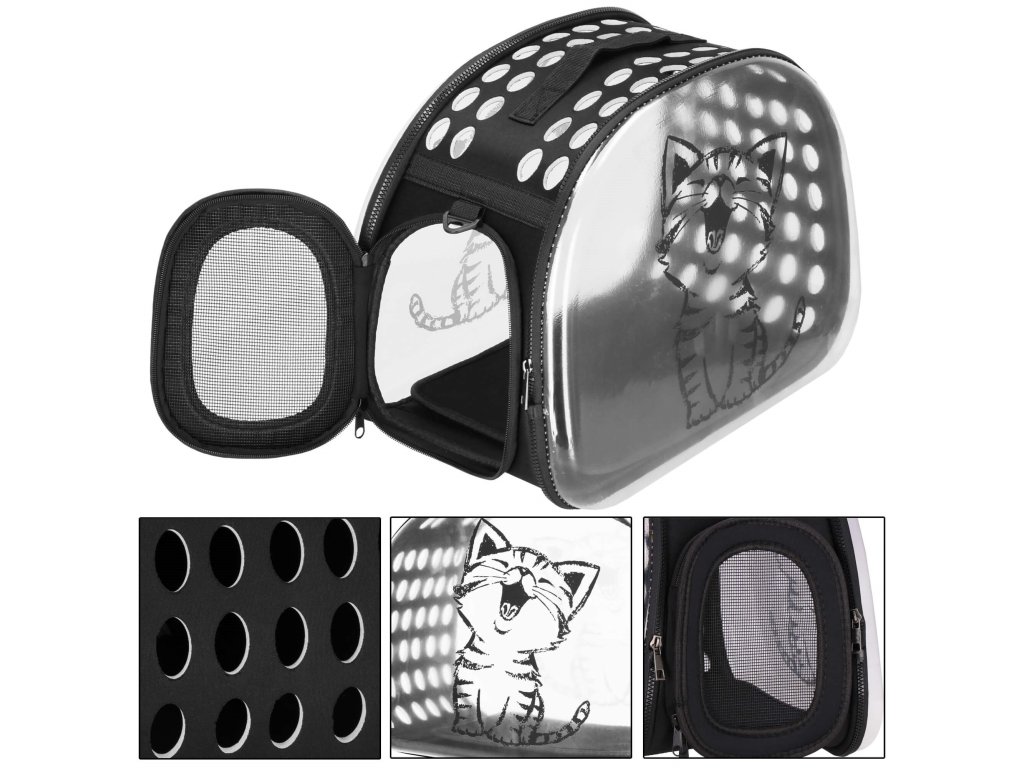 - Az oldalfalak szilárdak, átlátszó anyagból készültek, mindegyiken egy macska nyomtatás #A középső EVA hab elem cipzárral csatlakozik az oldalfalakhozAz elülső ajtó cipzáras, belül szellőző háló vanSzellőzőnyílások a habfal tetején és a láda hátuljánKülönleges védő szőnyeg a láda aljánTartalmaz fogantyút és levehető vállpántotÖsszecsukva kevés helyet foglalAz összecsukáshoz az oldalsó elemeket közvetlenül össze kell kapcsolni, és a belső rész közéjük illeszhető a láda többi elemével
