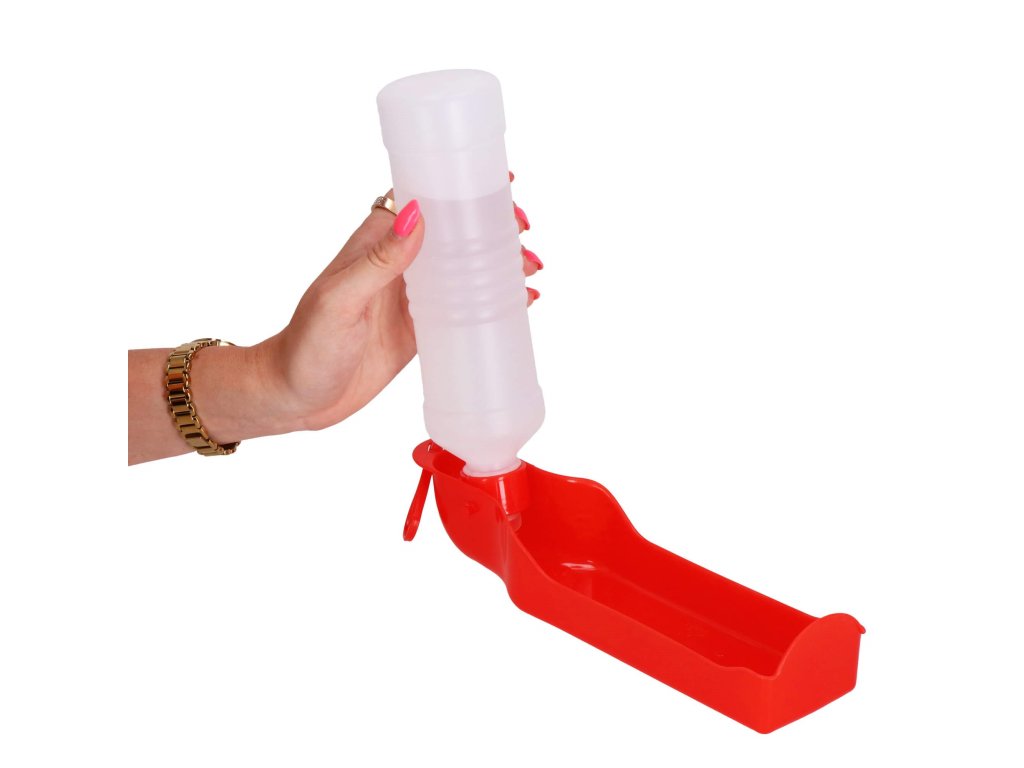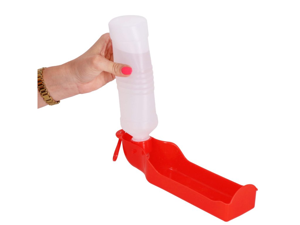 - A víz itatóba öntéséhez állítsa a palackot függőleges helyzetbe és nyomja meg