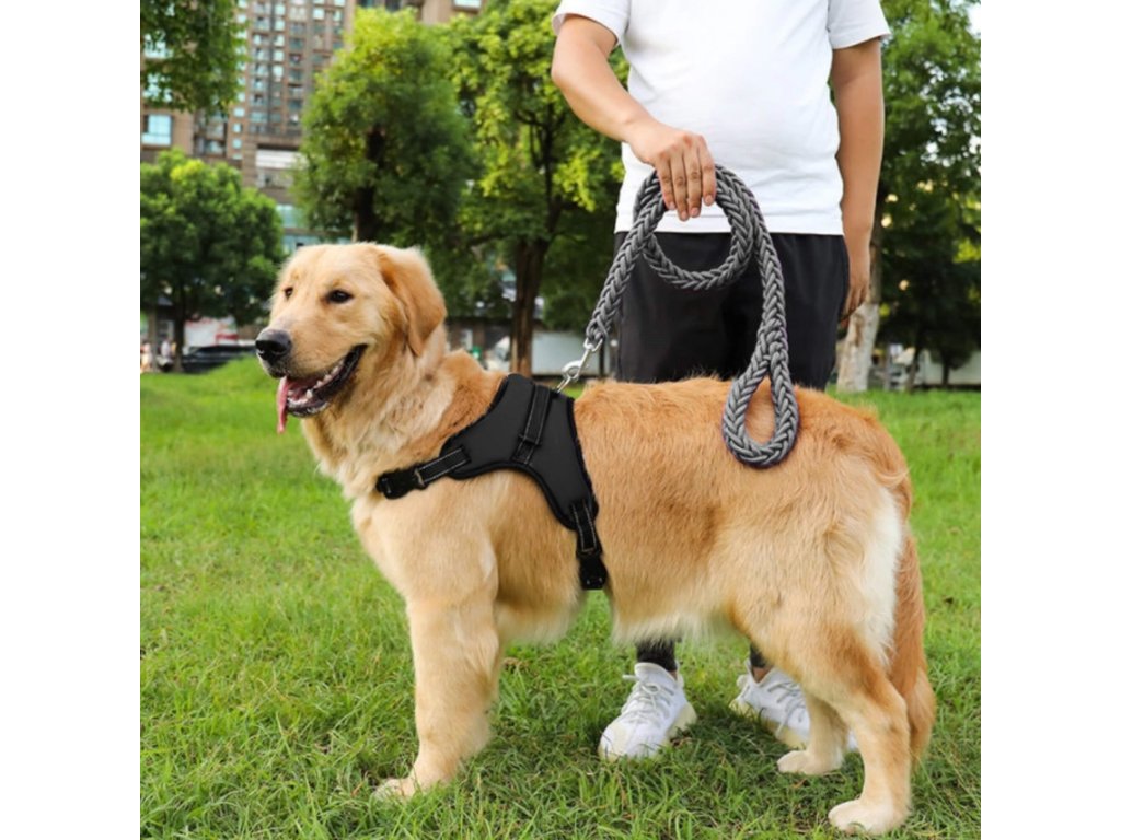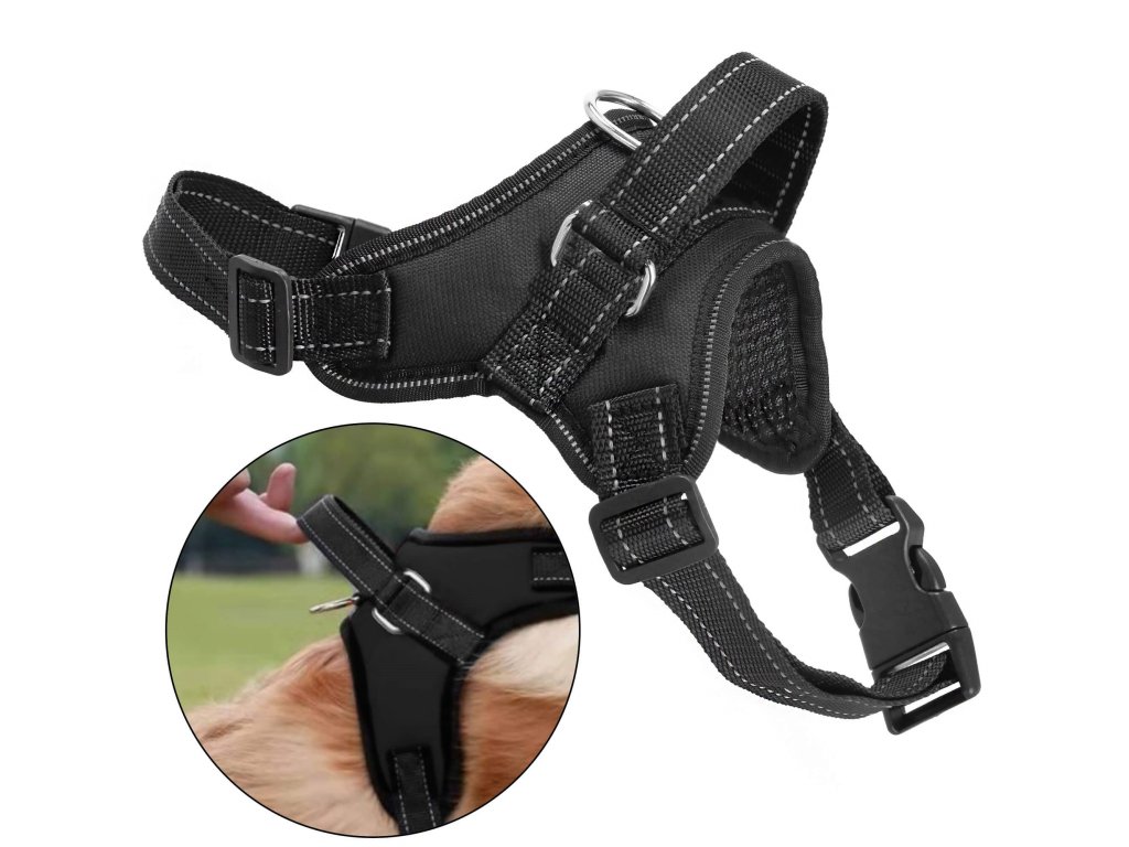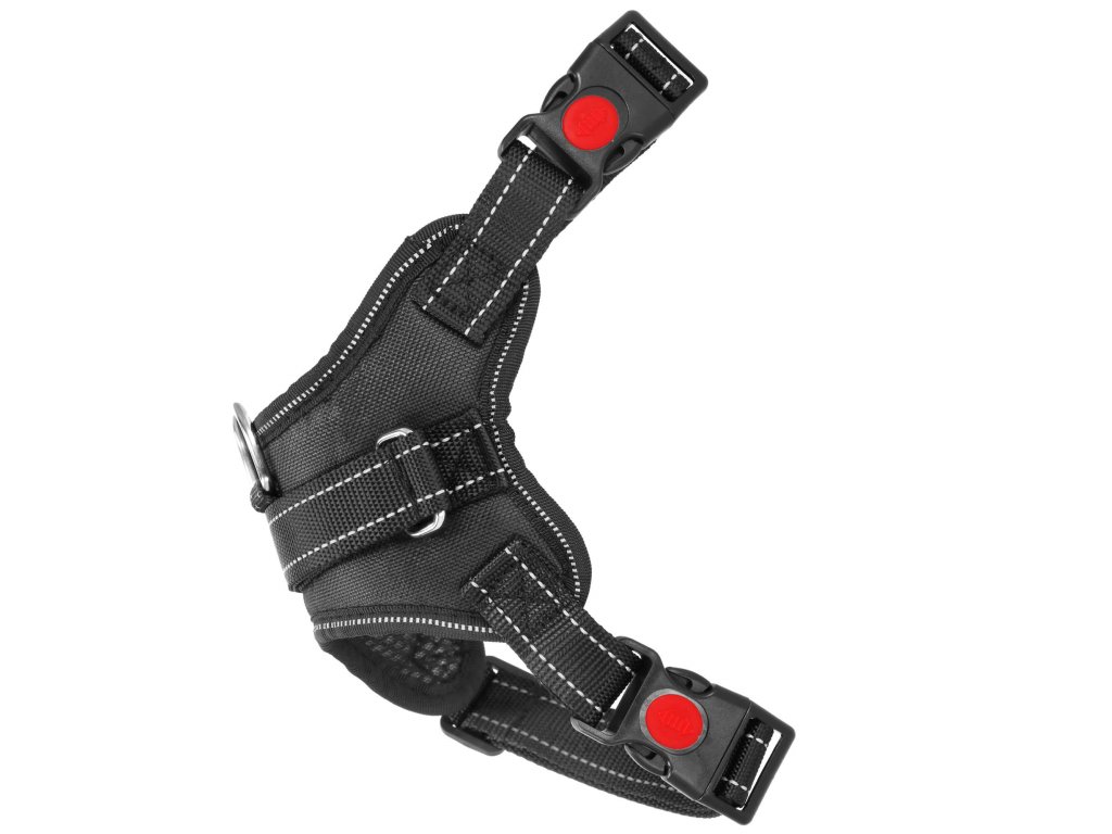 - Fém elemek rögzítik a fogantyút, fém D-gyűrű a póráz rögzítéséhez.