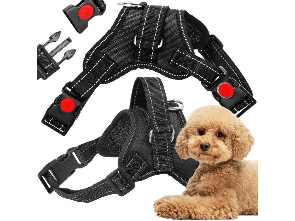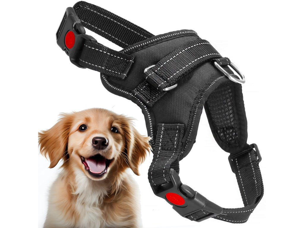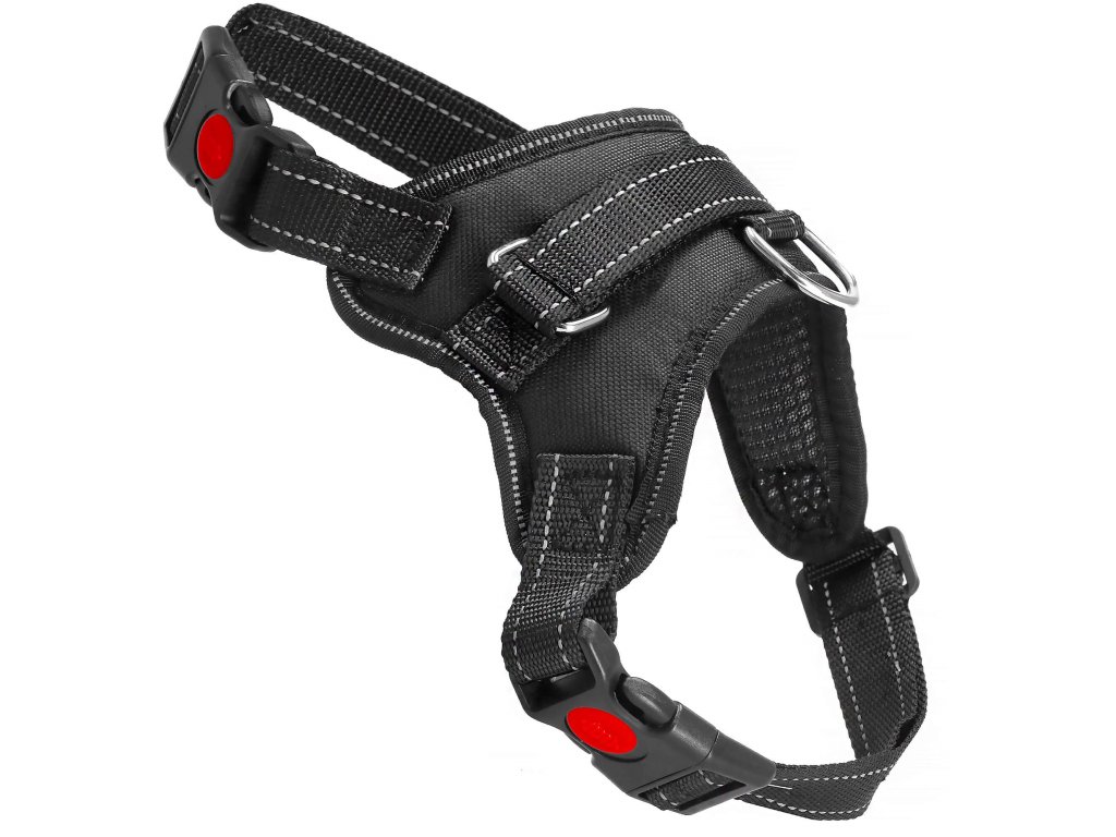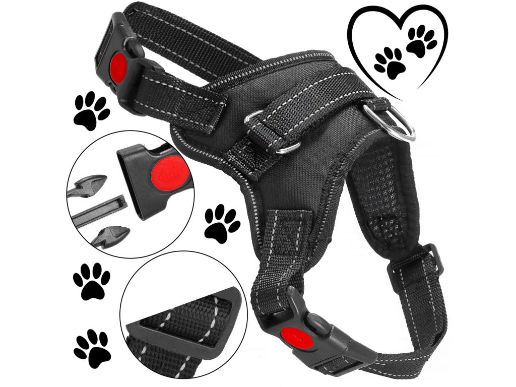 - Fém elemek a fogantyú rögzítéséhez, fém D-gyűrű a póráz csatlakoztatásához.