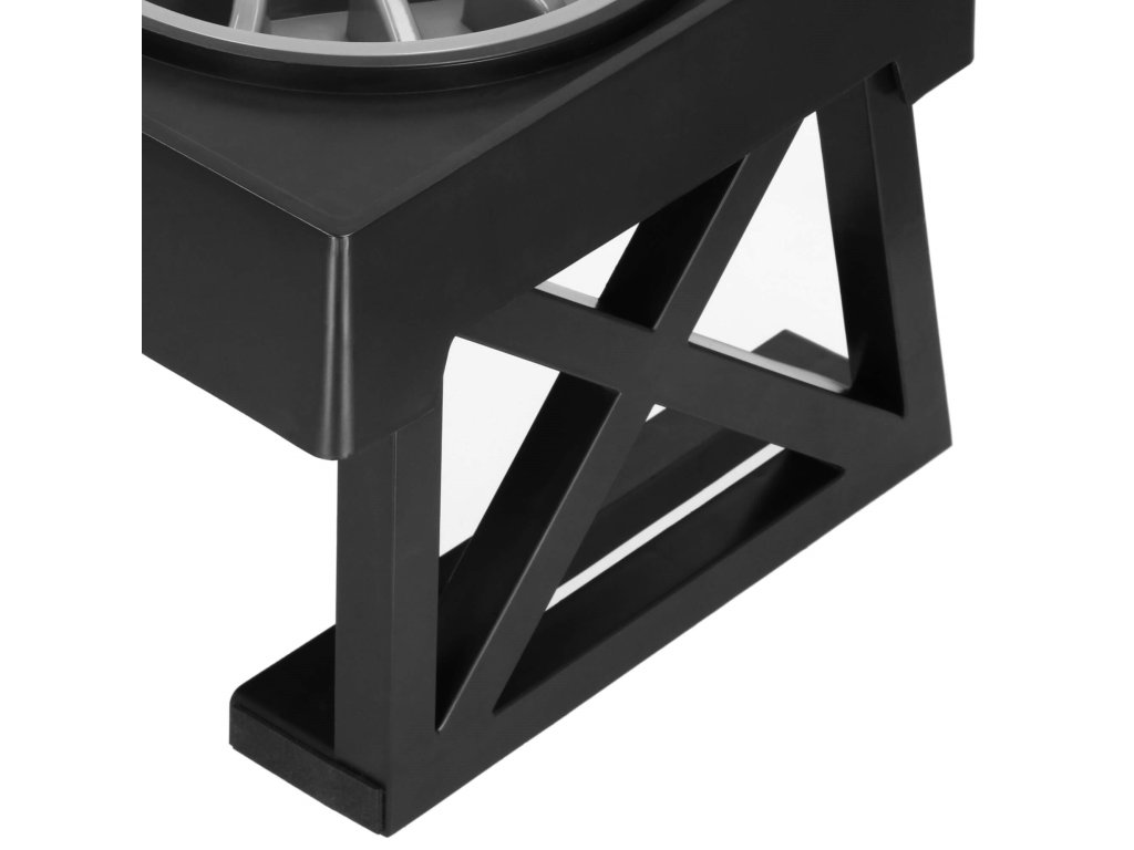 - Az állványon lévő tálak előrehajló konfigurációban is beállíthatók, a lábakat más formában beállítva (ekkor a magasság max: 27 cm)