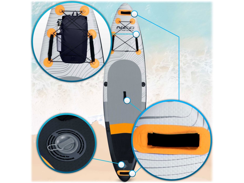 a SUP deszka a szuper szoros szeleppel megtartja felhajtóerejét használat közben. A készlet tartalmaz egy légtelenítő kulcsot.Prémium SUP deszka háromrétegű PVC konstrukcióval, beépített karbonsínnel és megerősített varrásokkal.