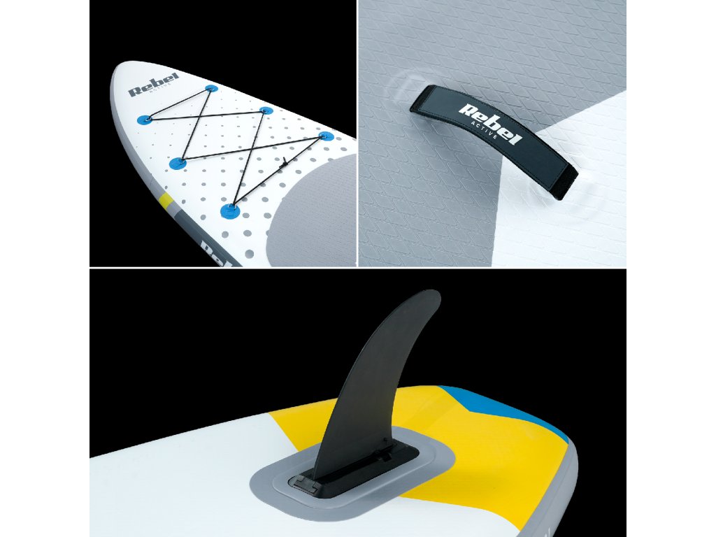 A Rebel Active paddleboard szilárd és stabil szerkezetű, amely drop-stitch technológiával készült. Ez lehetővé teszi, hogy biztonságosan mozogjon a vízen, függetlenül a képességi szintjétől, akár állva, akár ülve. A 3 mm vastag EVA habbal borított csúszásmentes deszka kiváló tapadást biztosít, így a legintenzívebb paddleboarding is gyerekjáték lesz.