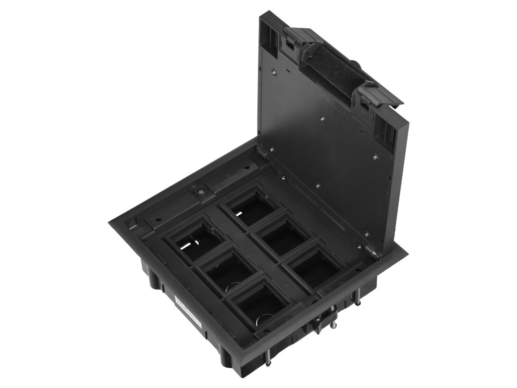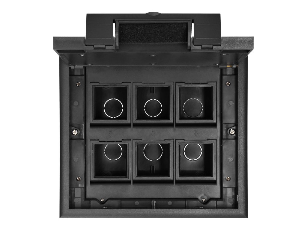 Ismerje meg ezt az okos megoldást irodái, otthoni dolgozószobái vagy kereskedelmi helyiségei számára. A padlódoboz 6x45mm műanyag fekete minden modern felhasználói elvárásnak megfelel – kényelem, biztonság és esztétika. Ideális megoldás az elektromos eszközök padlóból való áramellátásához.
