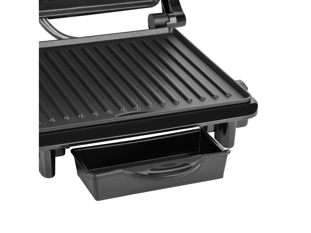 hullámos bélések Mozgatható zsanér a különböző vastagságú ételek sütéséhez Zsírlefolyó hornyok Eltávolítható csepegtető tálca Teljesítményjelző Nem melegedő fogantyú Túlmelegedés elleni védelem Rozsdamentes acél fedél Csúszásmentes lábak ----------------------- Műszaki adatok ----------------------- Maximális teljesítmény:
