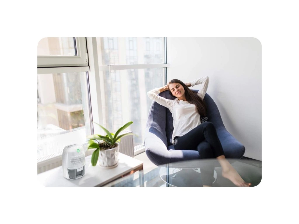 A párátlanítót könnyű használni, és kis méretének köszönhetően szekrényekben, szekrényekben és konyhabútorokban is elhelyezhető. A páramentesítő beépített vízszintérzékelővel rendelkezik. Ha a víztartály megtelt, a készülék automatikusan kikapcsol, és a jelzőfény zöldről pirosra vált.