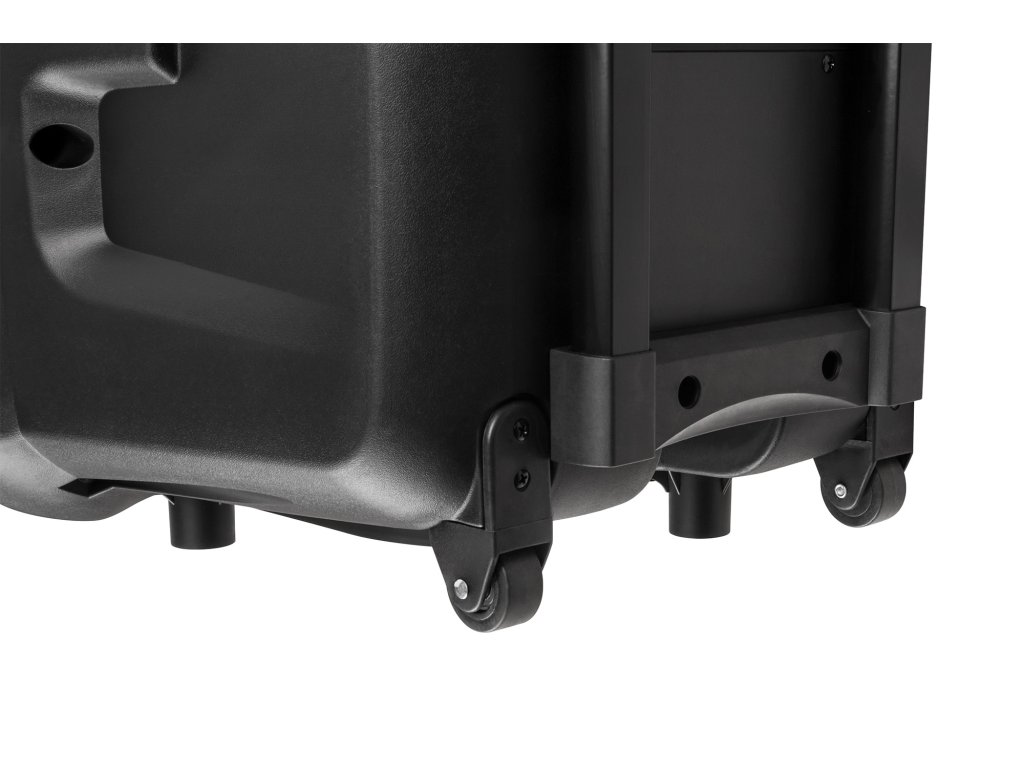 Nem szeret sokáig egy helyben maradni? Hagyja, hogy kedvenc zenéje mindig elkísérje Önt! A kényelmes fogantyúnak és a stabil görgőknek köszönhetően könnyedén szállíthatod az oszlopot a helyszínre.