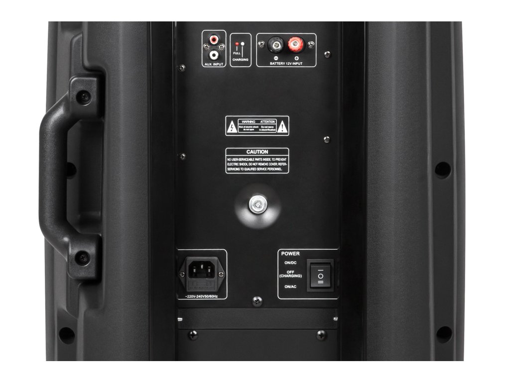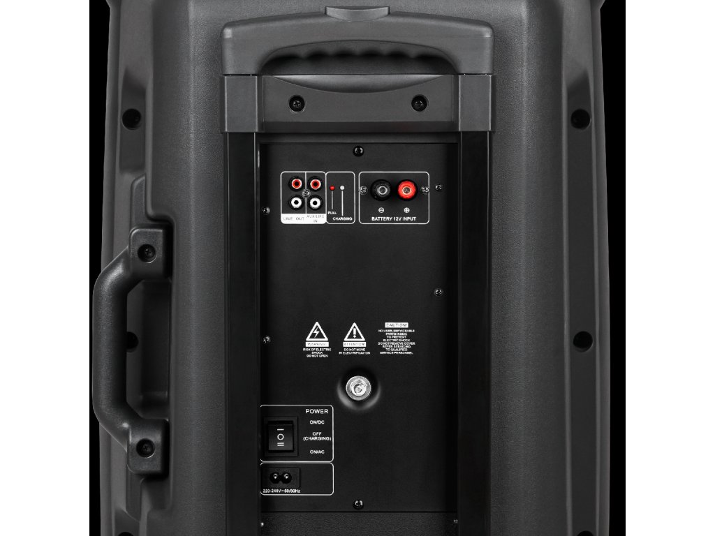 12 V DC -Beépített akkumulátor: 12 V, 7 Ah ------------ Tartalmazza: 2 vezeték nélküli mikrofon, távirányító Méretek: 508x448x758 mm Nettó súly: 18,8 kg Bruttó súly: 21,35 kg