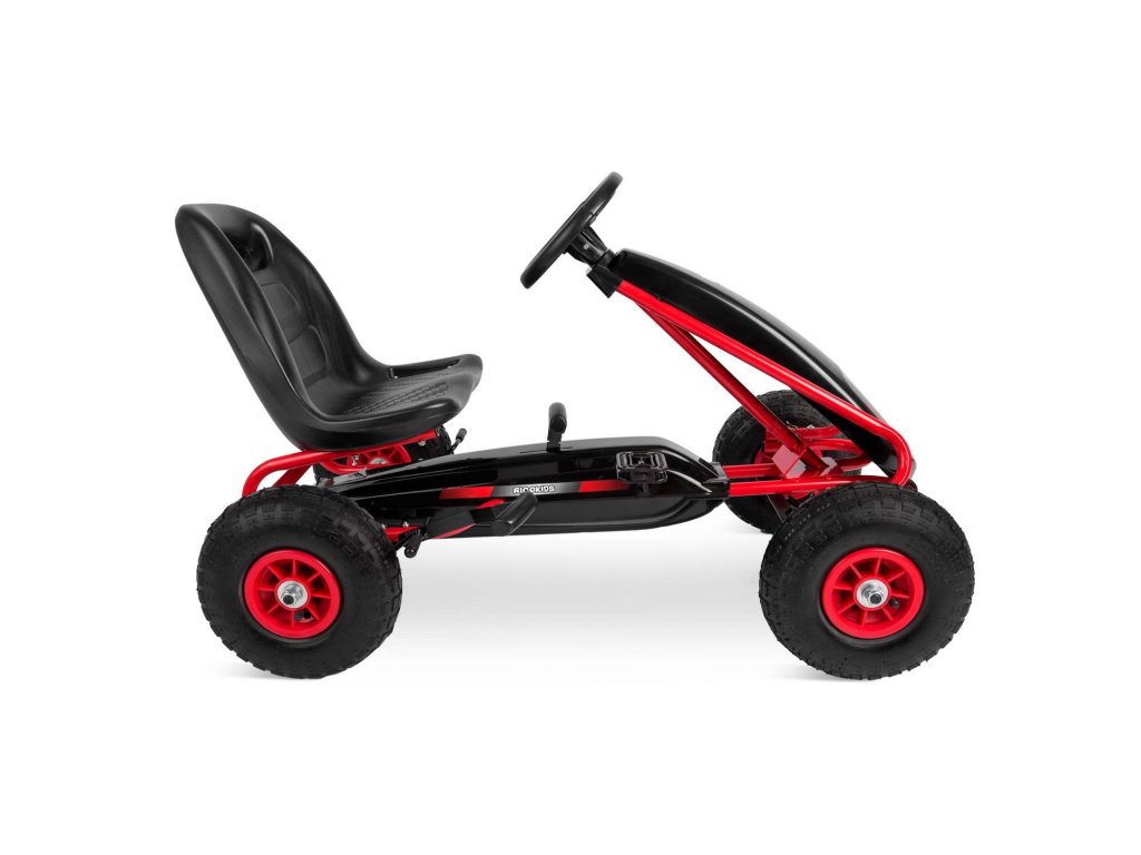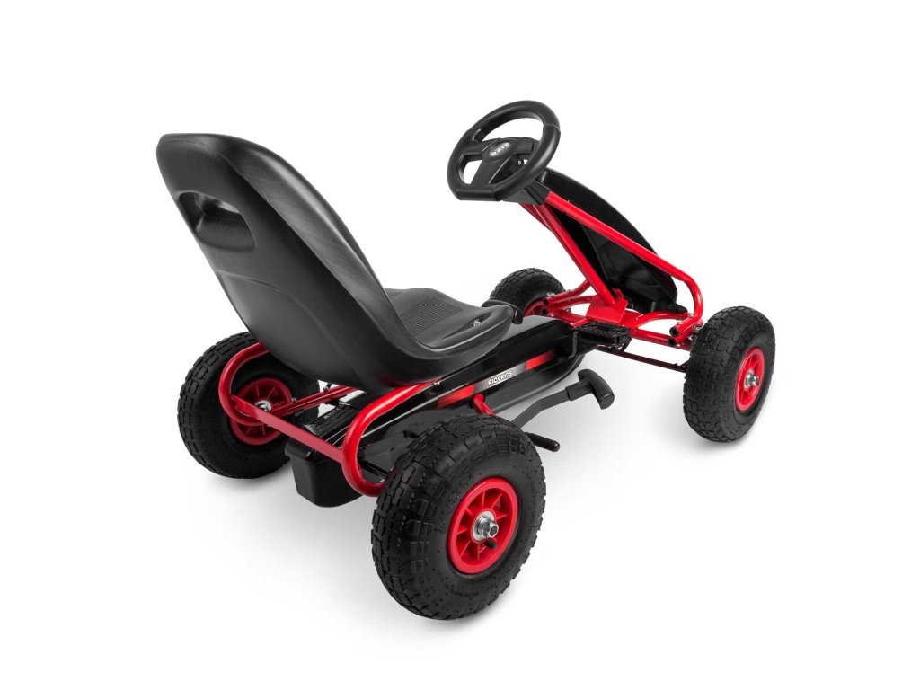 A gokartban használt torziós tengelynek köszönhetően a manőverezés könnyedén megy a kicsinek.