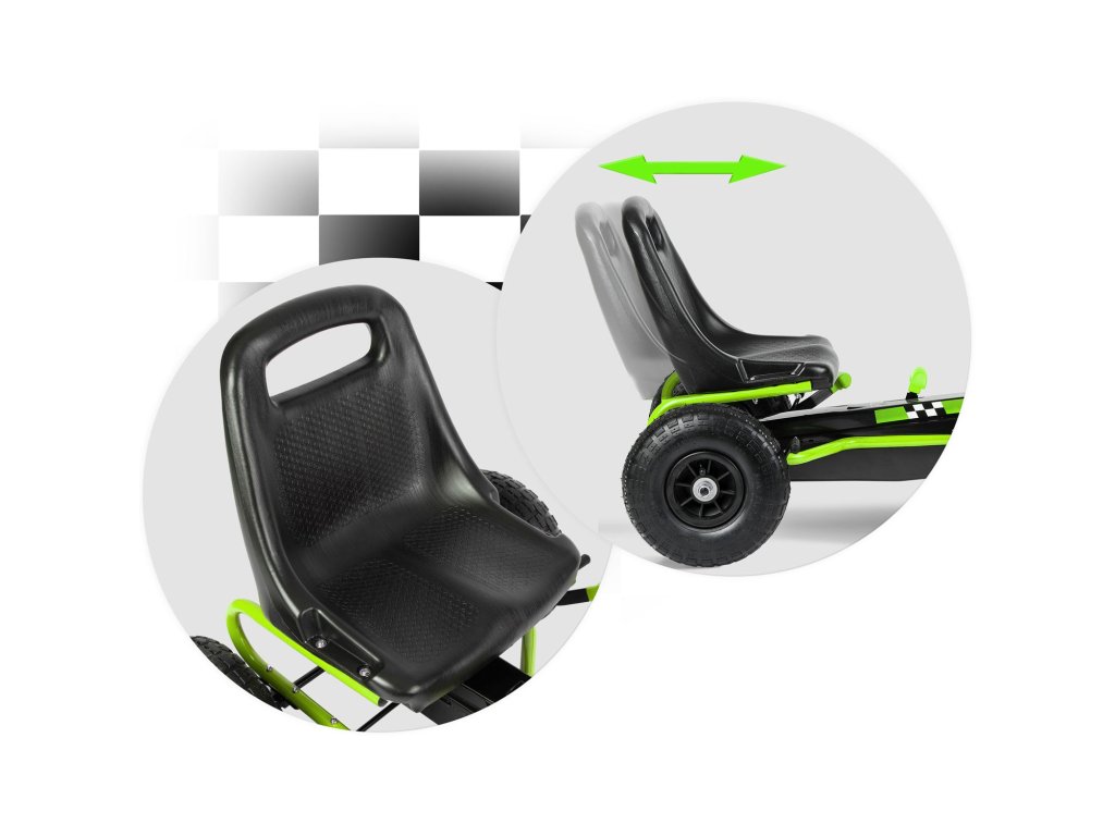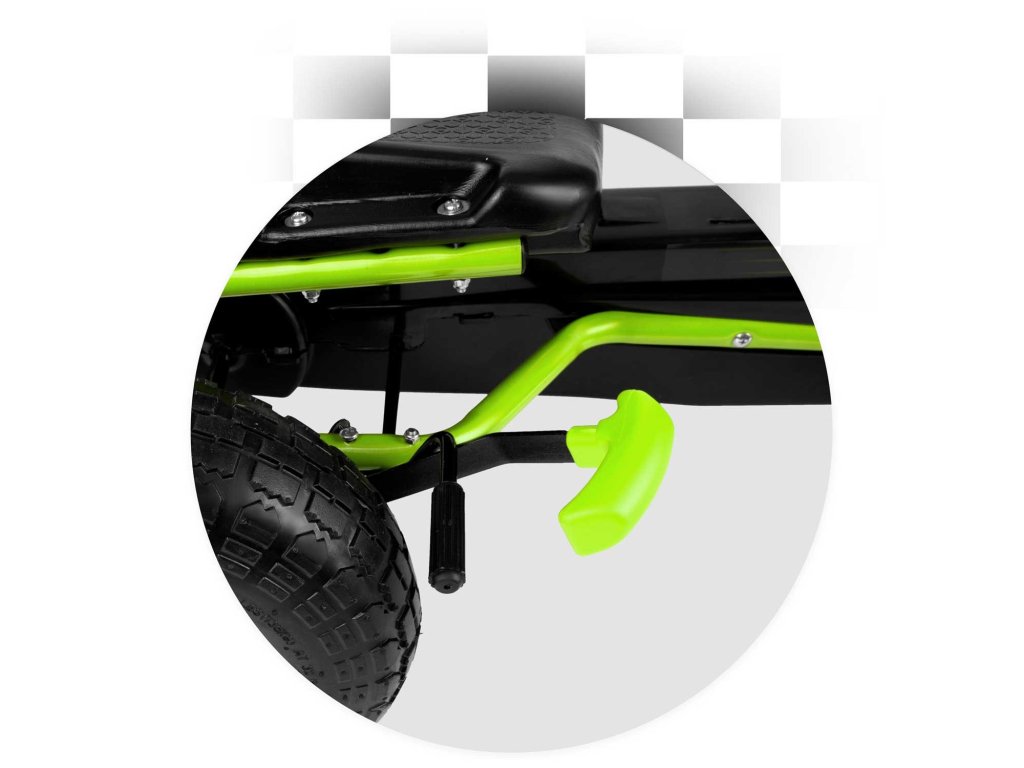 a kart meghúzva a gokart üresjáratba kapcsolható - így a pedálok elzárhatók a forgástól (hasznos, ha lefelé haladsz).