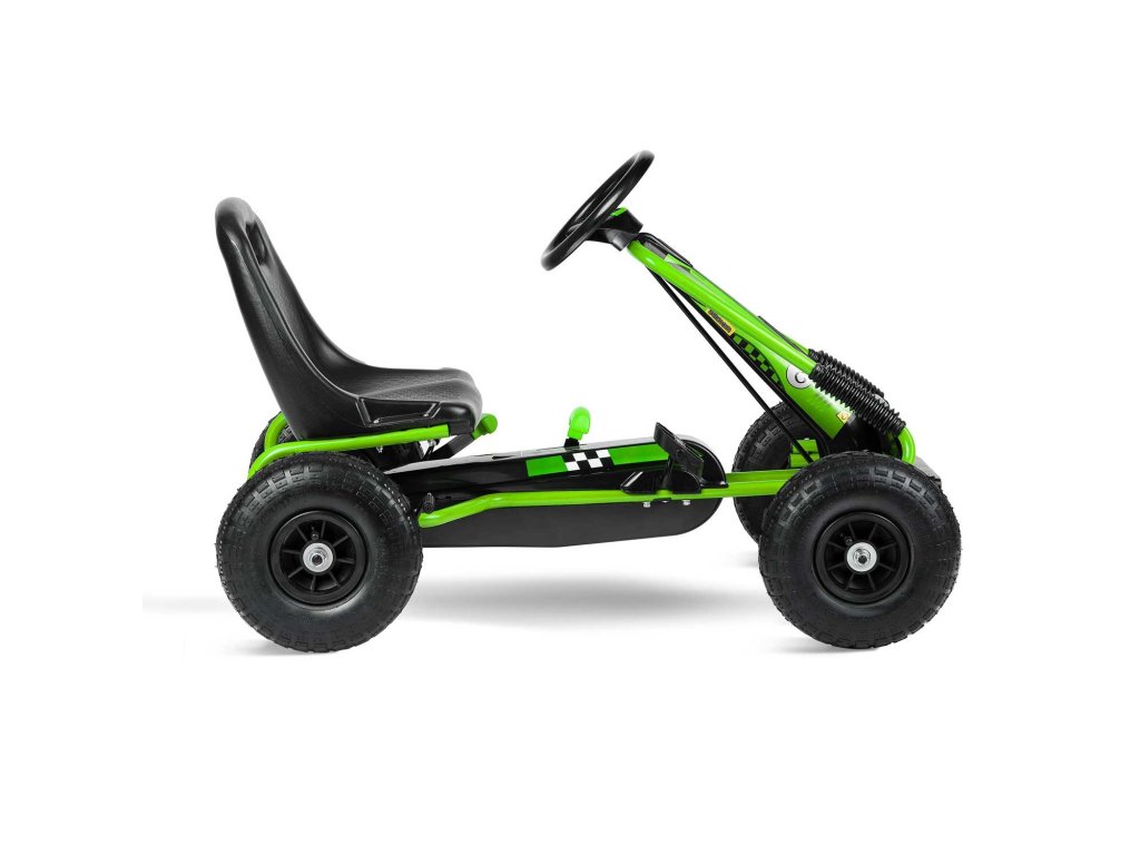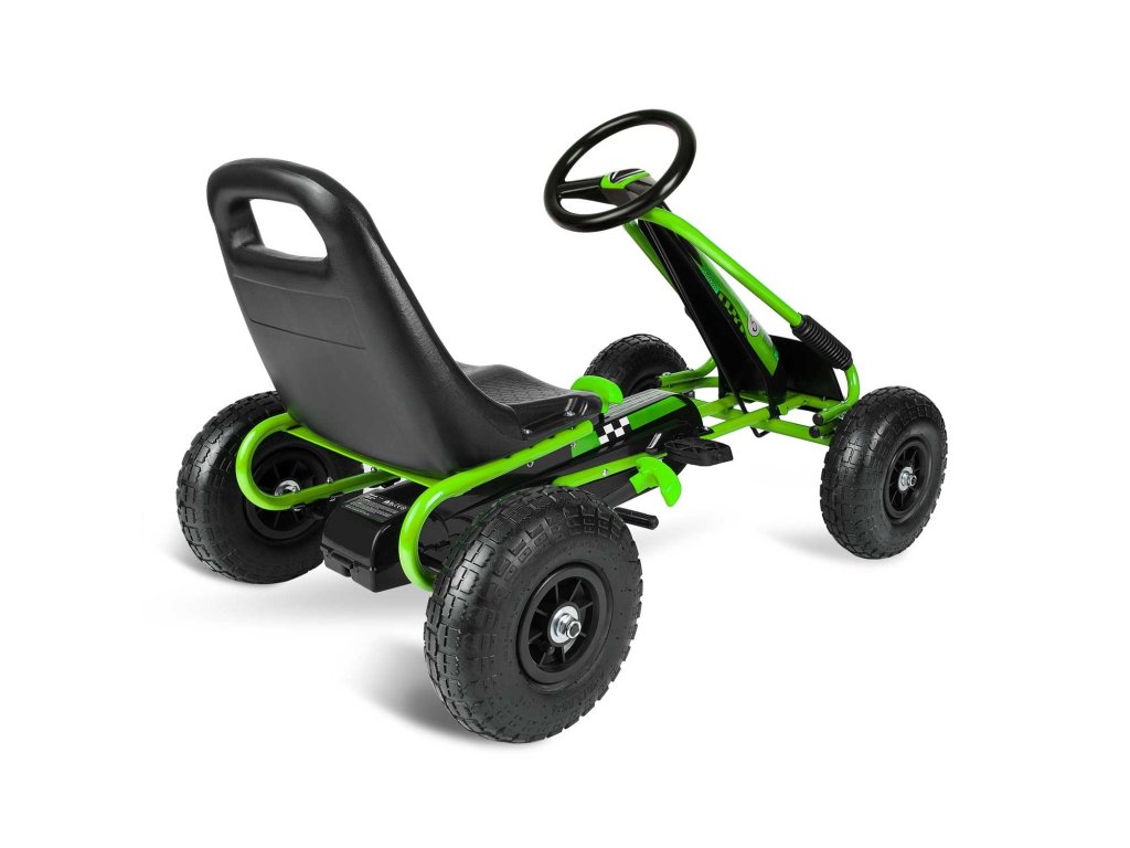 A gokartban használt torziós tengelynek köszönhetően a manőverezés könnyedén megy a kicsiknek.