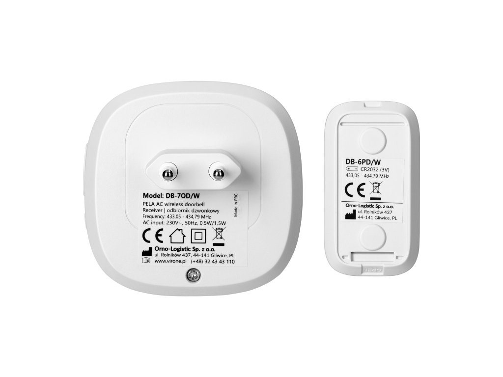 PELA vezeték nélküli csengő, fehér. Ez egy esztétikus és elegáns készülék, amely egy tanulási rendszernek köszönhetően további adókkal bővíthető. Az adókat több bejáratnál is felszerelheti, ami kényelmet biztosít a mindennapi életben.A termék rendkívül egyszerűen működik - nincs szükség vezetékes telepítésre. Csak helyezze az adót az ajtóhoz vagy a kapuhoz, a vevőt pedig a ház bármelyik aljzatába (hatótávolság akár 300 m nyílt területen).