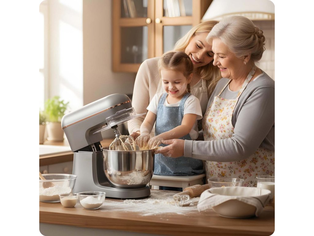 Néhány íz visszarepít minket az időben – nagymama konyhájába, a friss sütemény illatába és a gyermeki örömbe, amikor segítenek a tészta gyúrásában. A Berdsen planetáris mixer összekapcsolja ezeket a családi pillanatokat a modern megoldásokkal, amelyek megkönnyítik még a legnehezebb előkészítési lépéseket is. Te a legfontosabb dolgokra koncentrálsz – a főzés örömére, a nevetésre a konyhapulton, és a gyerekekkel közös tésztakóstolásra. A többit a technológia elvégzi.