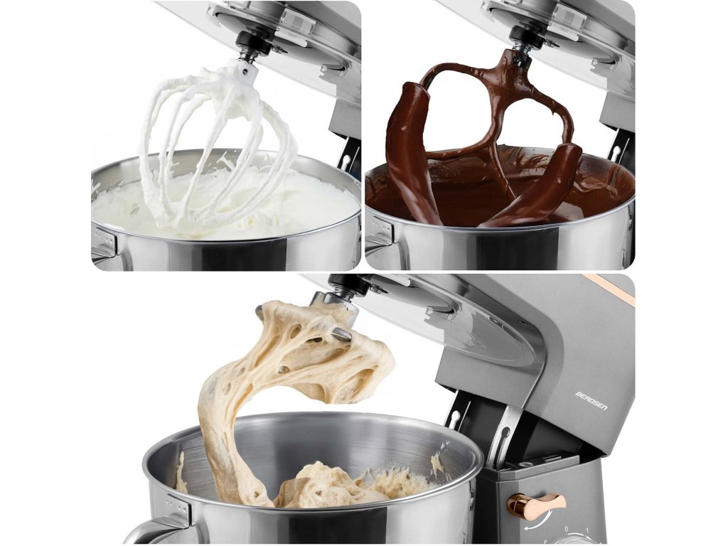 A könnyű tejszíntől kezdve az rugalmas élesztős tésztáig, egészen a sűrű csokoládé masszáig – a Berdsen 1400 W planetáris mixer garantálja a tökéletes eredményeket bármilyen recept esetén.