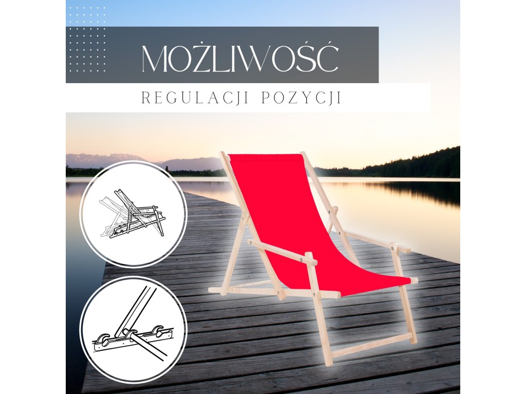 Plážová stolička DC003 červená- Rám vyrobený z odolného bukového dreva