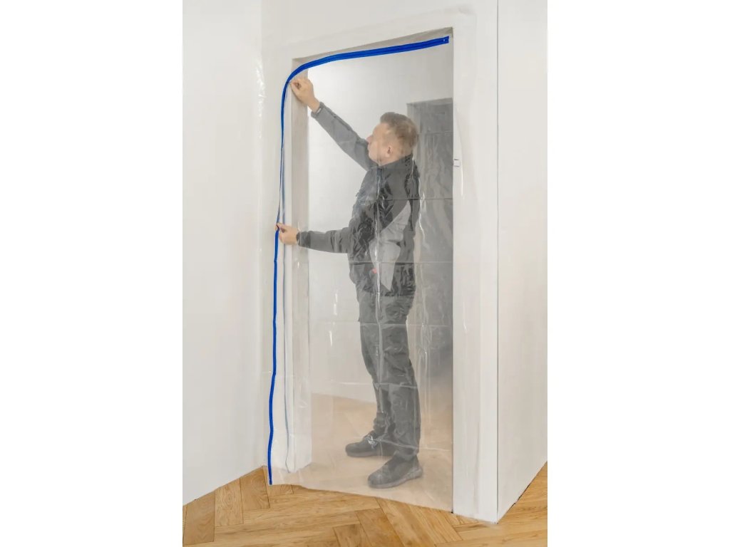 A függönybe épített dupla zipp zár lehetővé teszi a szabad mozgást a helyiségek között anélkül, hogy kockáztatnánk a védett terület szennyeződését. A termék telepítése rendkívül egyszerű és gyors a mellékelt dupla ragasztószalagnak köszönhetően, ami további könnyítést biztosít az installáció során és stabil rögzítést garantál a függöny számára.