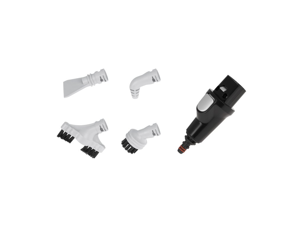 A TSA5051 gőztisztító fej készlet egy sokoldalú kiegészítő, amely jelentősen növeli a gőztisztító lehetőségeit. A készlet tartalmaz: körkefét, fugatisztító fejet, résfejet és kaparót. Minden fej különféle tisztítási feladatokat szem előtt tartva lett tervezve, lehetővé téve a pontos és hatékony tisztítást az egész házban.