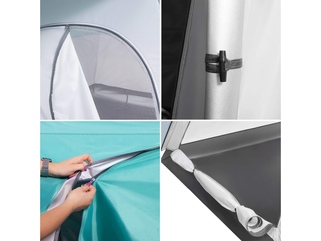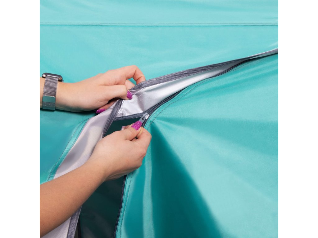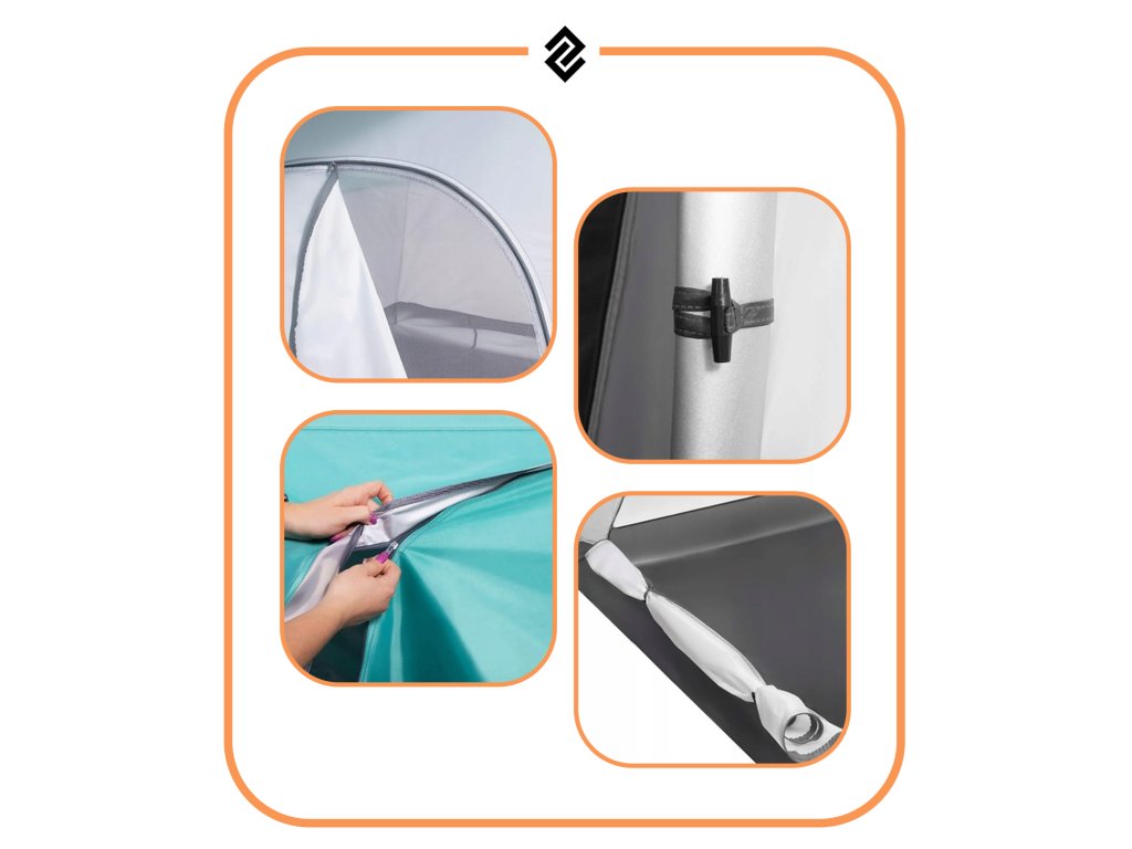 - Az előtér és a kamra kétirányú, egysínű cipzárral zárható