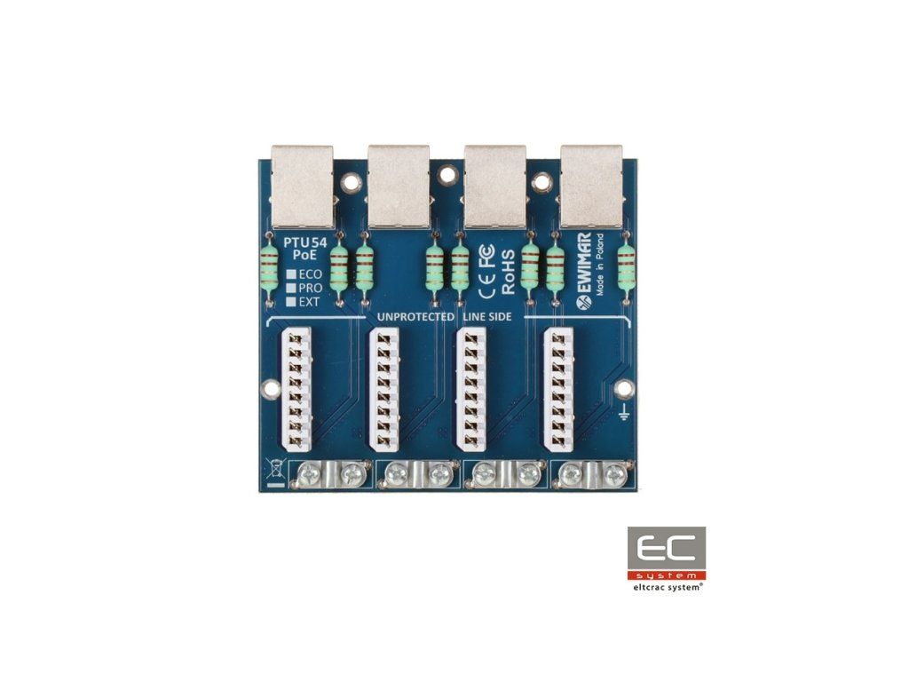 PTU-54-EXT/PoE - 4-csatornás LAN hálózati túlfeszültség-védelem modul - EWIMAR