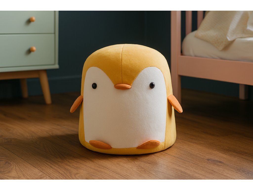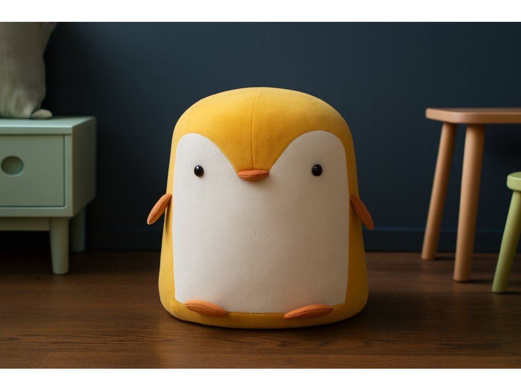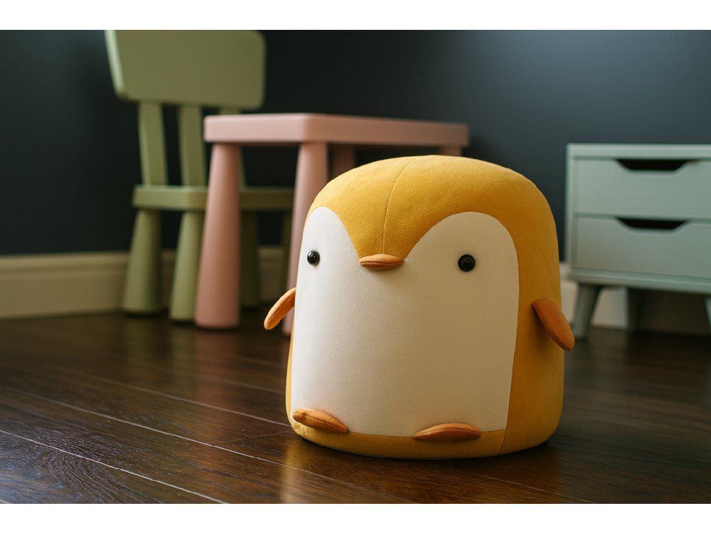PUFKA PINGVINEK 28x34 cm egy praktikus és aranyos ülés gyerekeknek. Stabil fa konstrukció és puha hab töltet biztosítja, hogy ideálisan illeszkedik a gyerekszobába, mint funkcionális és dekoratív bútor.