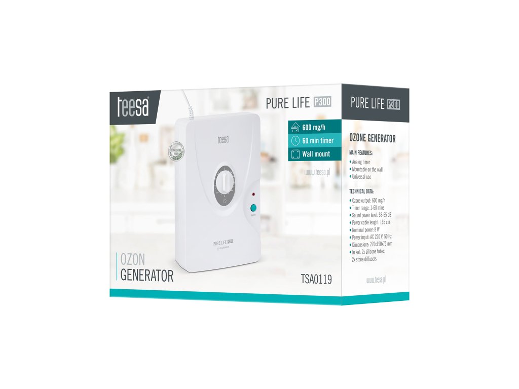 Kíváncsi, melyik ozonizátor a legjobb az Ön otthonába? Gondoskodjon egészségéről még ma, próbálja ki a Teesa Pure Life P300 otthoni ozonizátort, és csodálkozzon rá ennek a kis készüléknek a sokoldalúságára. Az ózon többek között baktériumölő, vírusölő és gombaölő tulajdonságokkal rendelkezik. Ezenkívül harcol a penész és az atkák ellen, és eltávolítja a kellemetlen szagokat. Ez teszi a Pure Life P300 készüléket alkalmassá arra, hogy otthonának bármely helyiségében használhassa.