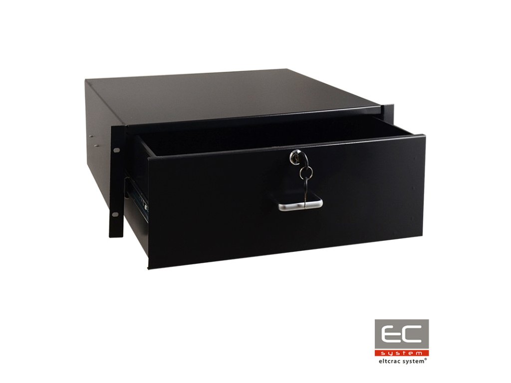Rack fiók 4U magassággal, amely a további elemek tárolására/montázsára van tervezve Rack szekrényekben.