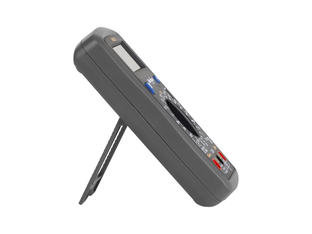 hFE-tranzisztorteszt ÁLTALÁNOS JELLEMZŐK Háttérvilágítású kijelző A mérési tartományok kézi váltása Kihajtható állvány Utolsó fagyás jelzése Alacsony töltöttségi szint jelzője Polaritás: 1,5 V, 9 V, 12 V Diódateszt HFE-tranzisztorteszt Áramkör folytonossági teszt: