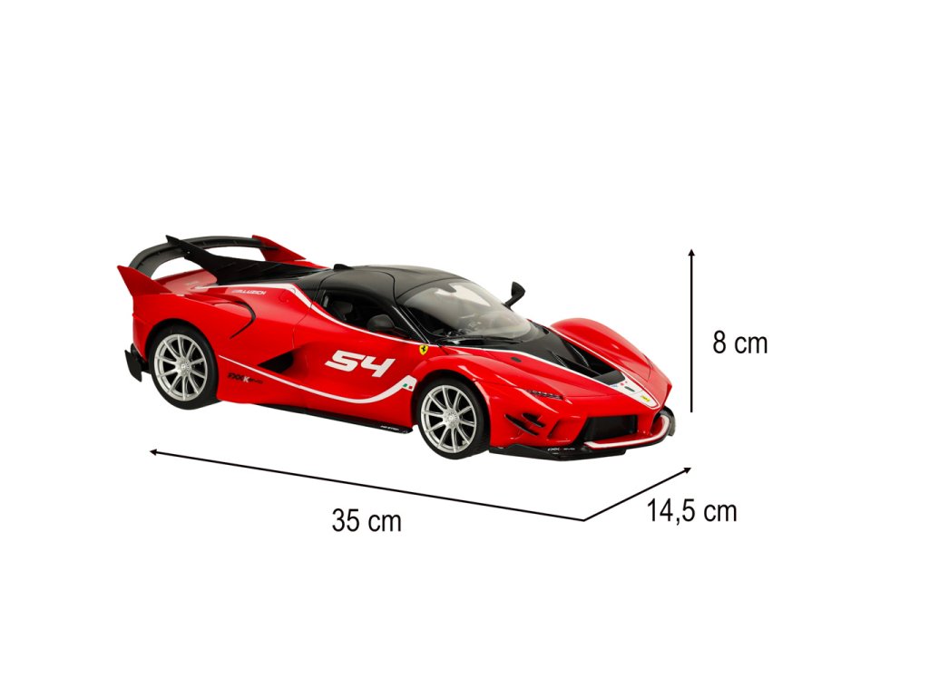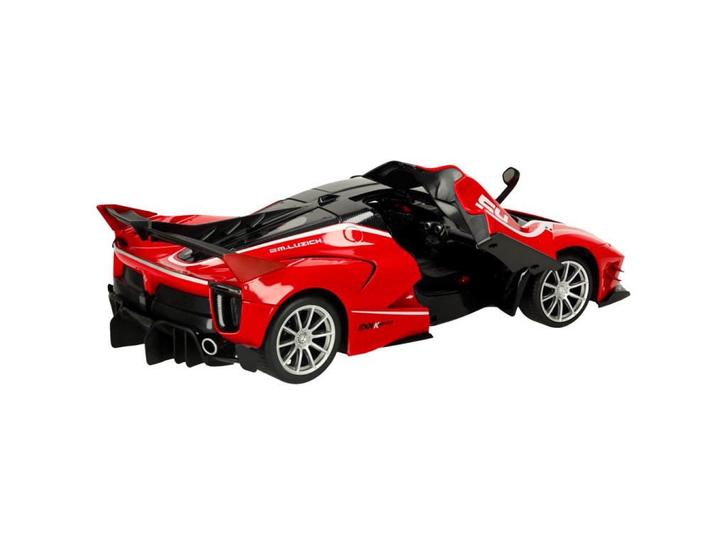 realisztikus reprodukció - A Ferrari FXX K 1:14 méretarányú miniatúrája hűen visszaadja a valódi szuperautó részleteit, beleértve a logót, az aerodinamikai vonalakat, az arányokat, a nyitható ajtókat és az első lámpákat.