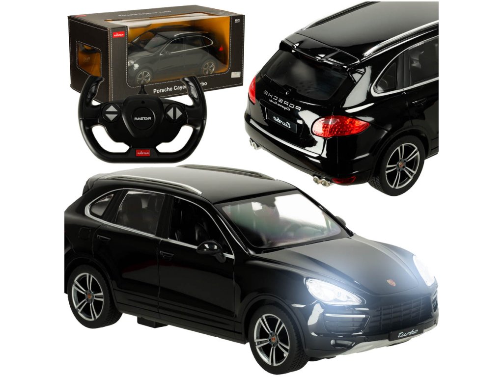 Fedezze fel a távirányítós vezetés izgalmát a Porsche Cayenne Turbo modellel Rastartól! Ez az elegáns fekete SUV 1:14 méretarányban hű reprodukciója az ikonikus járműnek – a precízen reprodukált Porsche logótól a valósághű fényszórókon át a jellegzetes sziluettig és az eredeti jármű részleteiig.
