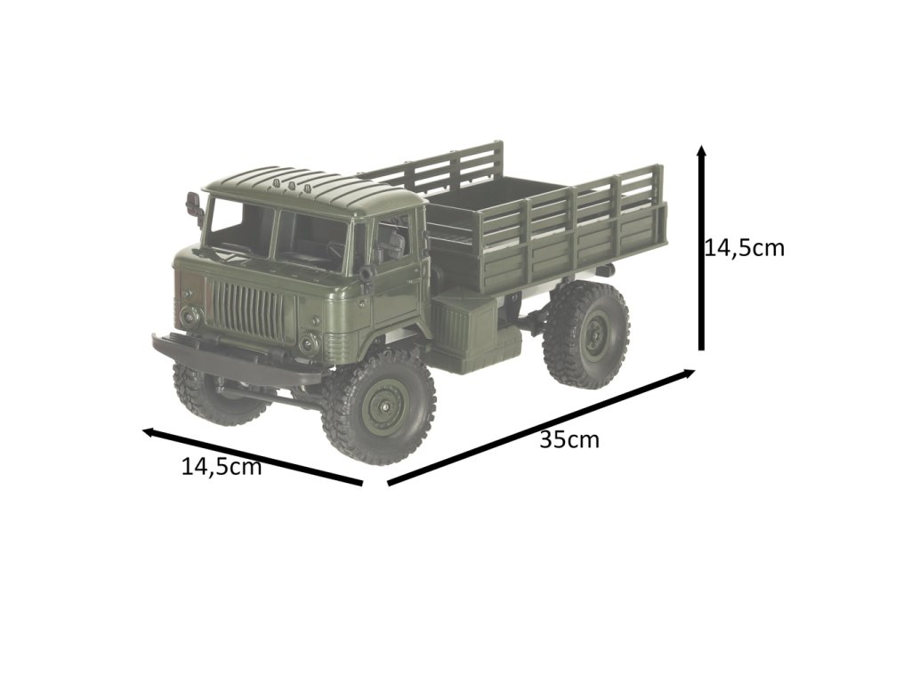 A 1:16 méretarányú jármű realizmusával és részletgazdagságával nyűgöz le. A világító fények és az aprólékosan kidolgozott elemek lehetővé teszik, hogy valóságos katonai expedíciót játszhass el. Az összkerékhajtás biztosítja, hogy a teherautó bármilyen körülménnyel könnyedén megbirkózzon - probléma nélkül átsiklik a homokon, füvön és egyenetlen terepen is. Az intuitív vezérlő sima menetet és pontos manőverezhetőséget garantál, és a hosszú akkumulátor-élettartam órákig tartó izgalmas szórakozást biztosít.