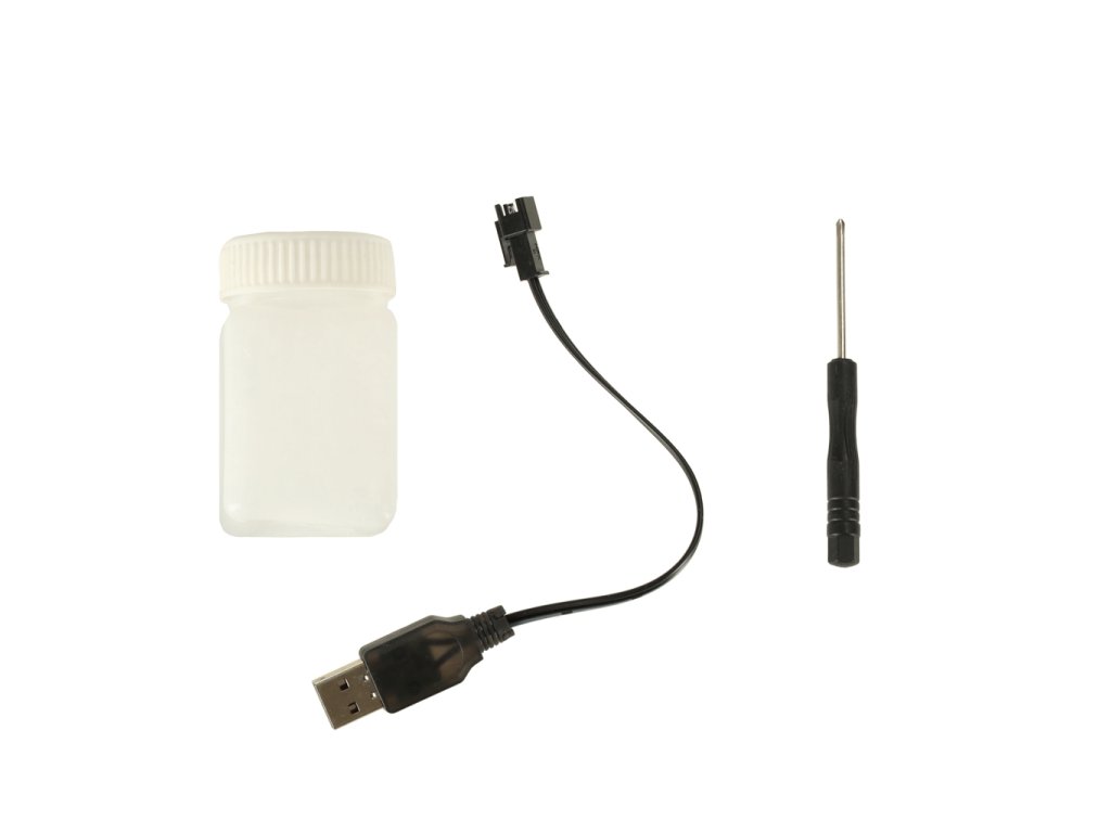 A készlet tartalmaz egy folyadéktartályt a buborékfolyadék számára, amelyet a gépbe kell helyezni, valamint két tasak előkészített folyadékkal. Ez a készlet órákig tartó szórakozást biztosít!