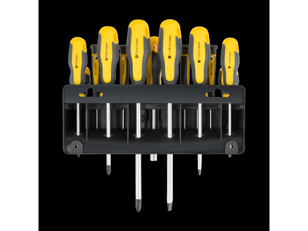 Minden csavarhúzónak ergonomikus markolata van, amely kényelmet és biztos fogást nyújt még hosszabb munkák során is. Króm-vanádium acélból készültek, a szerszámok kopásállóak és hosszú élettartamot garantálnak. Válassza a készletünket, hogy biztos lehessen benne, hogy a legmagasabb minőségű szerszámokkal van felszerelve minden munkához, biztosítva a hatékonyságot és kényelmet.