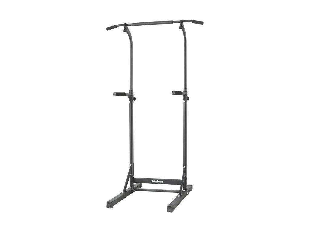 A többfunkciós edzőkorlát rúddal REBEL ACTIVE egy masszív eszköz otthoni és professzionális erőedzésekhez. Tartós acélszerkezet, állítható magasság és a rúd két különböző fogástávolsága azok a tulajdonságai, amelyek miatt ideális választás a sokoldalúságot és stabilitást értékelők számára. Hatékonyan fejleszti a mellkasi, kar-, hát- és hasizmokat.