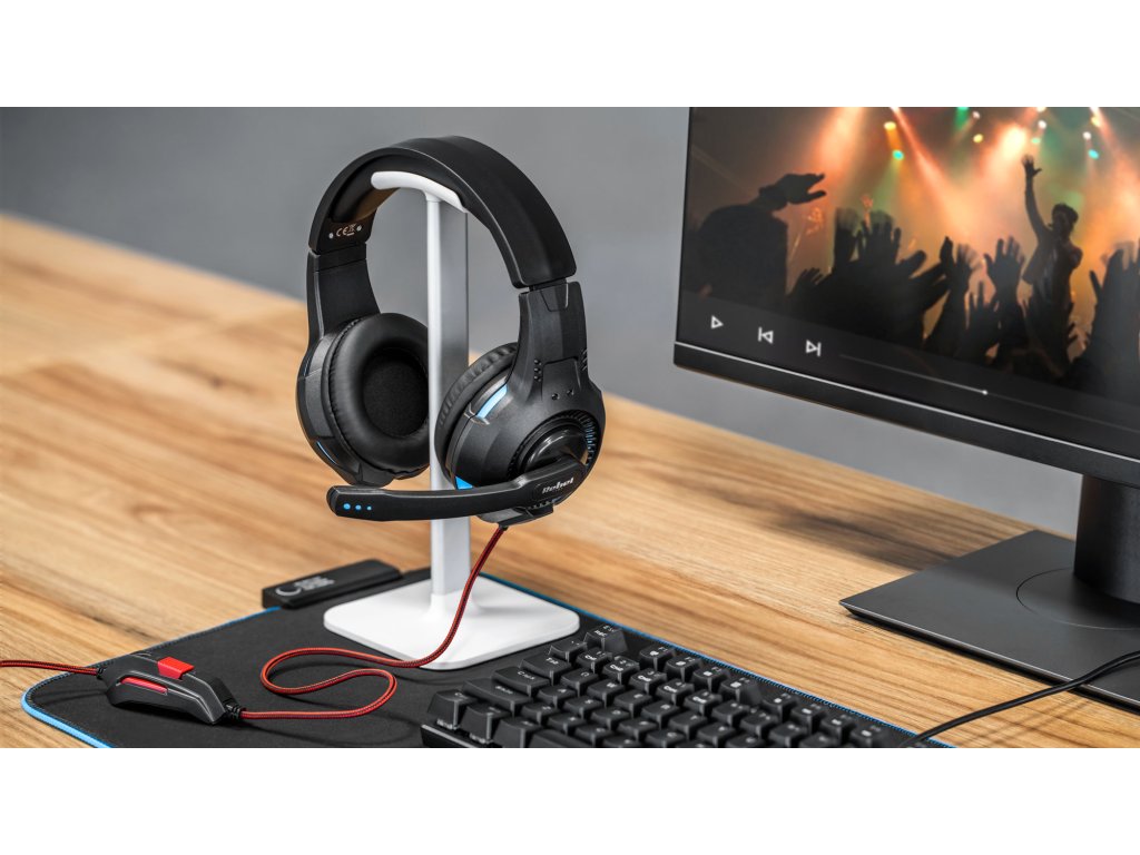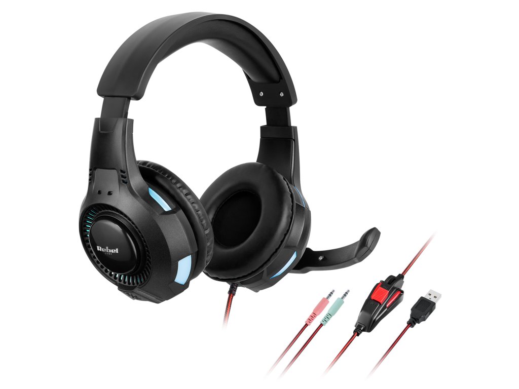 A Rebel GH-20 vezetékes fejhallgató mikrofonnal modern dizájnnal és kényelemmel rendelkezik. A fülkagylók és az állítható fejpánt teljes egészében puha ökobőrrel van bélelve, így a hosszú órákon át tartó játék során is nagyfokú kényelmet biztosít. Emellett az RGB háttérvilágítás játékhangulatot kölcsönöz nekik, és megragadja a tekintetet.