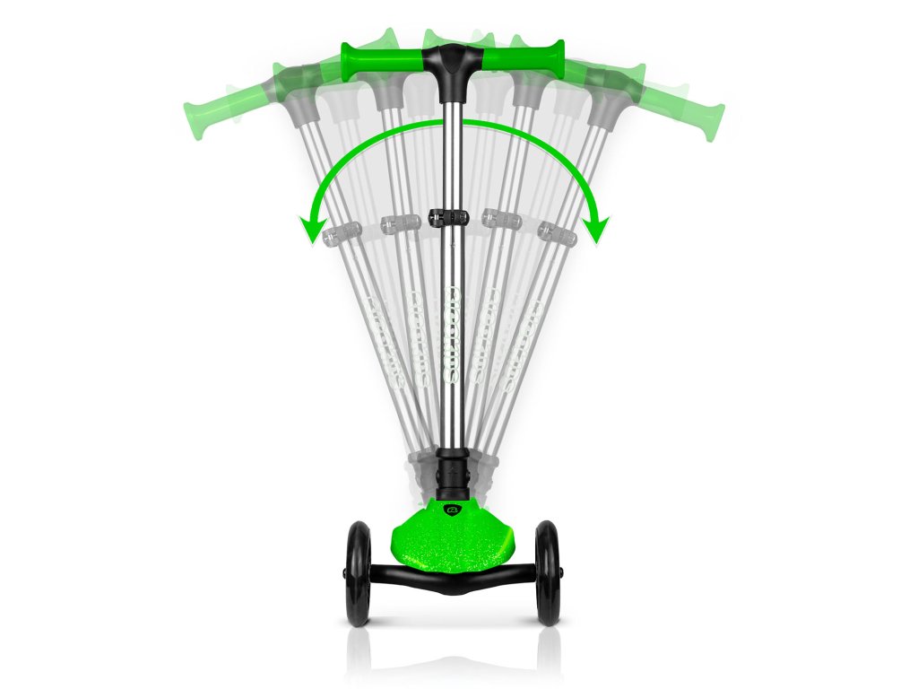 Kormányzás kizárólag a test egyensúlyozásával, kormányzás nélkül. Elég csak enyhén a kívánt irányba dőlni és máris kész! A gyermek gyorsan elsajátítja ezt a vezetési technikát, miközben gyakorolja az egyensúly érzékét. A roller, kanyarodáskor, stabilan tartja magát a függőleges helyzetben három kerekének köszönhetően.