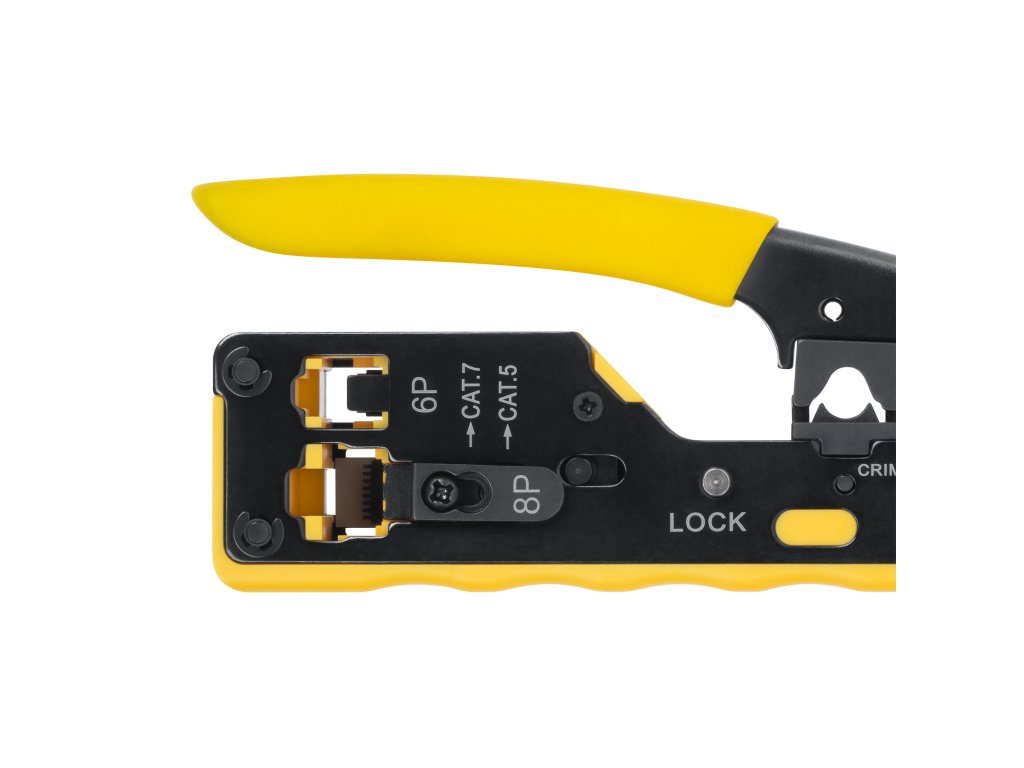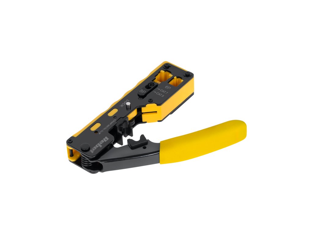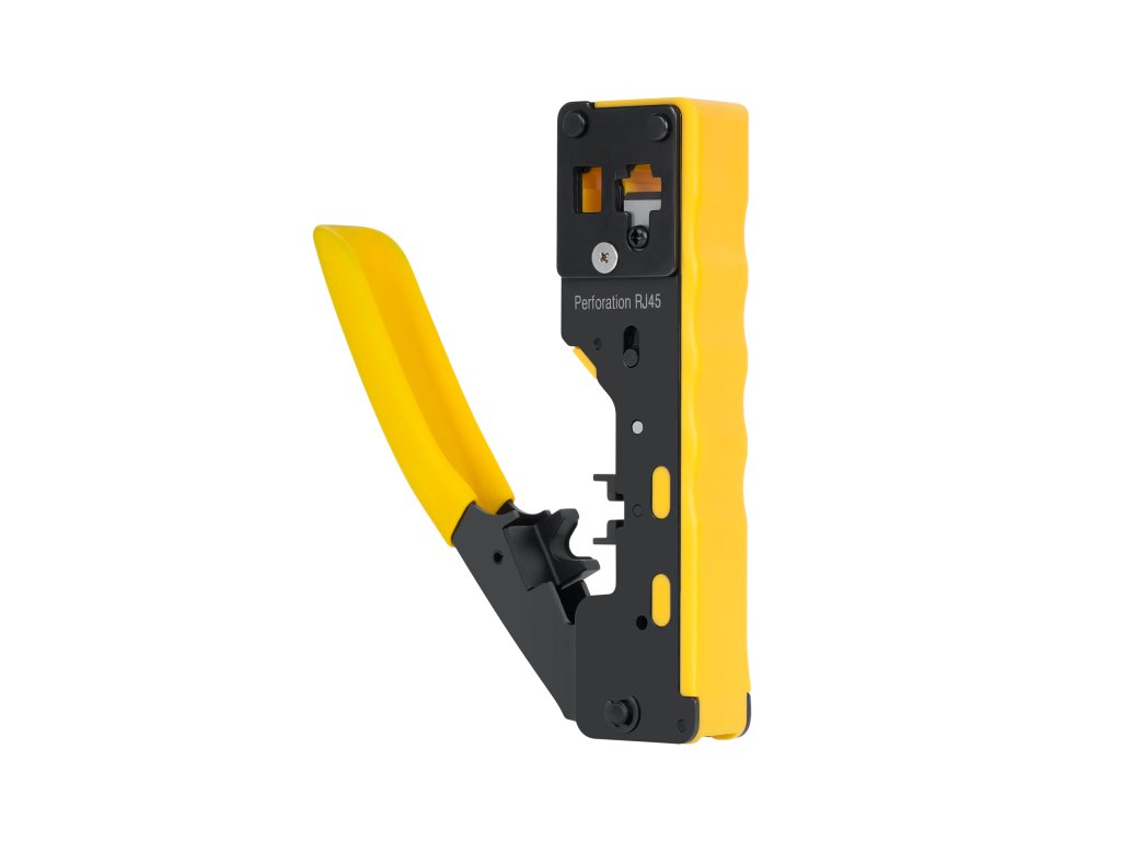 ARebel Tools sorozatba tartozó dugószorító egy olyan eszköz, amely minden ezermester műhelyében hasznos lesz .Egyszerű kezelhetősége és multifunkcionalitása miatt az amatőrök és a profi szerelők kedvence lesz.Az eszköz minden típusú RJ-11 és RJ-12 6P és 8P csatlakozóvégződések krimpelésére használható .