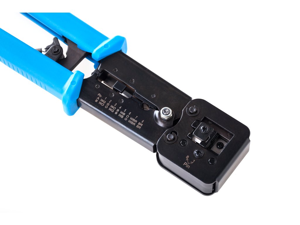 RJ45/RJ12/RJ11 csatlakozók krimpelő fogó + Pass Through rendszer