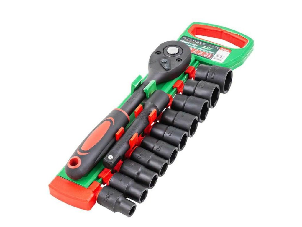 ROCKFORCE 1/2" 12 DB HEX KULCS KÉSZLET ÁLLÍTHATÓ RAJZOLÓVAL ÉS KELLÉKEKKEL