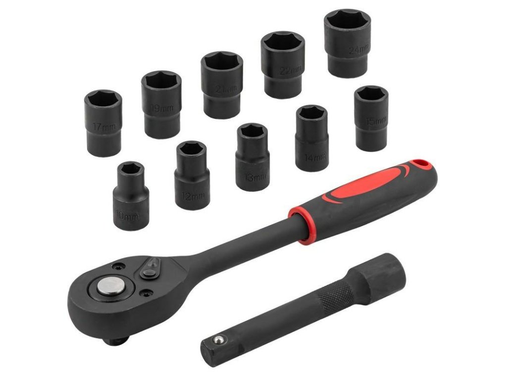 A fej készlet rázógéppel és 1/2" hosszabbítóval (12 elem) egy praktikus és megbízható szerszámkészlet, amely minden autószerelő műhelyben, szervizben és otthoni garázsban jól szerepel. A magas szintű kivitelezésnek és a megfelelő méretű fejeknek köszönhetően a készlet rendkívül univerzális, és kényelmes munkát tesz lehetővé különböző körülmények között.