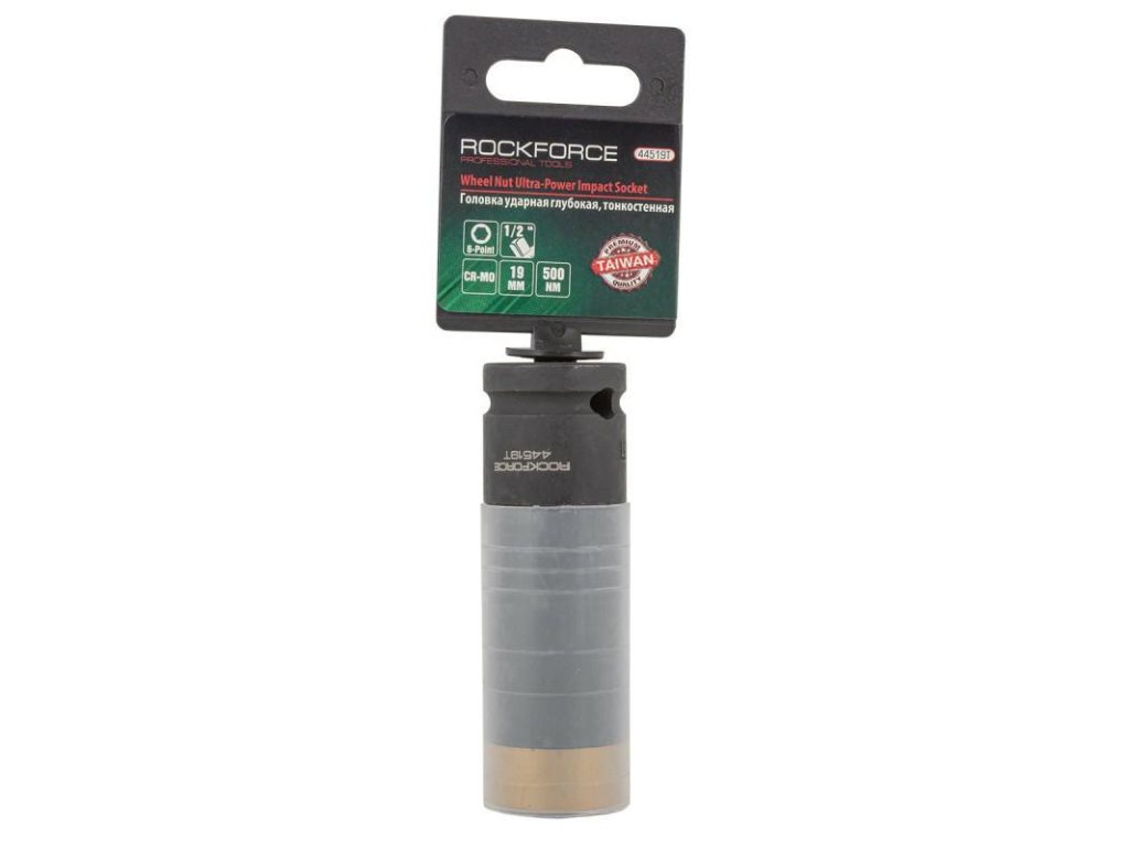 ROCKFORCE 1/2" vékonyfalú mély dugókulcs védőburkolattal, 19mm-es méretben