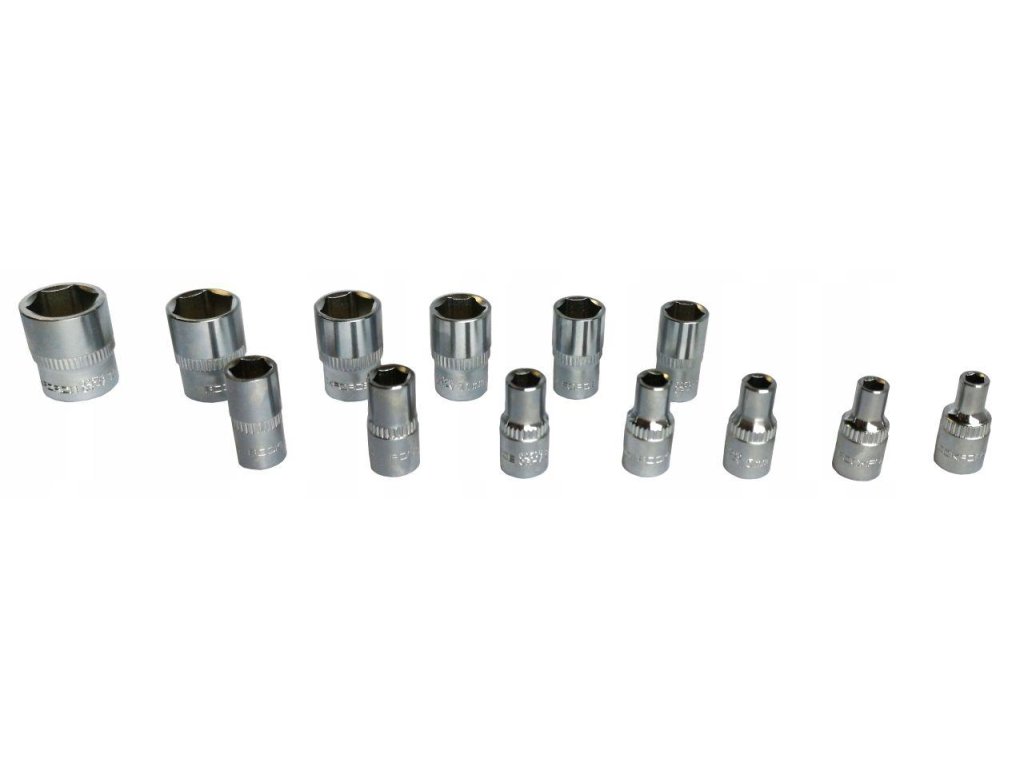 - 1/4” dugók – 13 db: 4; 4.5; 5; 5.5; 6; 7; 8; 9; 10; 11; 12; 13; 14 mm