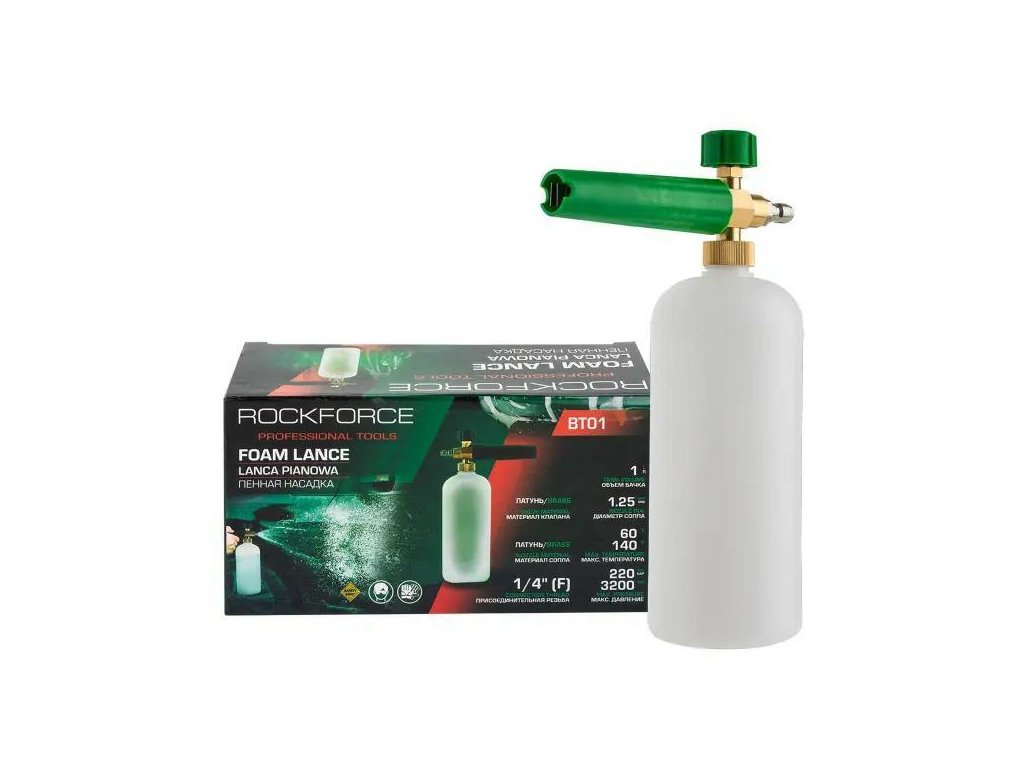 Rockforce BT01 habbal lazító magas minőségű kiegészítő, amelyet magasnyomású mosókhoz terveztek, lehetővé téve a sűrű, bőséges hab előállítását, amely szükséges az autók, motorok, biciklik vagy a kis kertépítészeti elemek hatékony tisztításához. Az sárgaréz alkatrészek (szelep és fúvóka), az 1 literes palack és a szabályozható fej alkalmazásának köszönhetően a habbal lazító megbízhatóságot és kiváló tisztítási eredményeket biztosít.
