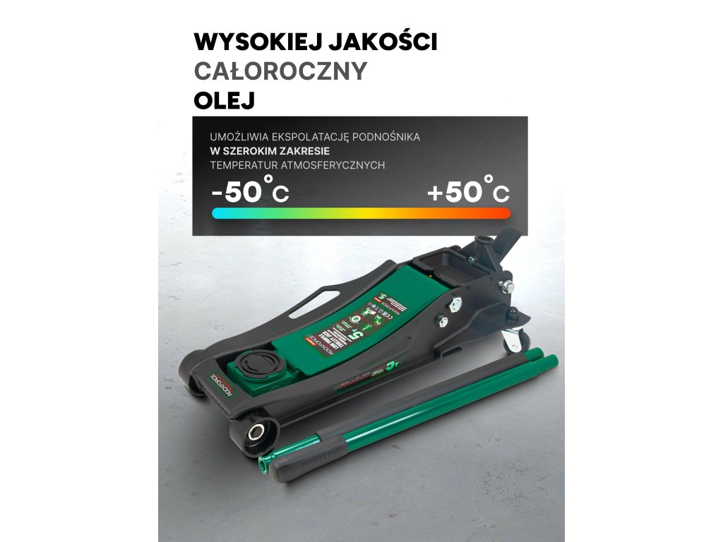 magas minőségű egész évben használható olajjal öntötték ki, amely megőrzi tulajdonságait szélsőséges hőmérsékleti tartományban, -50°C-tól +50°C-ig. Ez azt jelenti, hogy az eszköz bármilyen körülmények között használatra kész – akár hideg, fűtetlen garázsban, akár forró nyári napokon. Az erős acélkonstrukció ellenáll a korróziónak és a mechanikai sérüléseknek, a precízen megmunkált hidraulikus elemek pedig garantálják a hibátlan működést évekig.